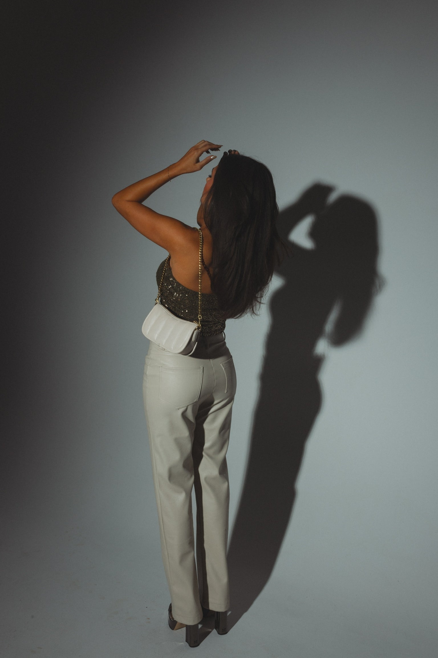 Our Olivia Sequin Strapless Top is a eye catching olive with sequins all throughout top. This top features ruched sides and is a fitted strapless top. This top has monochromatic sequins sewn in all throughout. This top runs true to size and is lined.