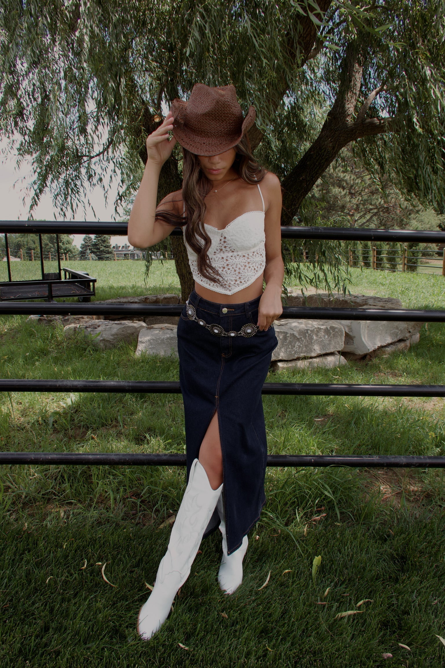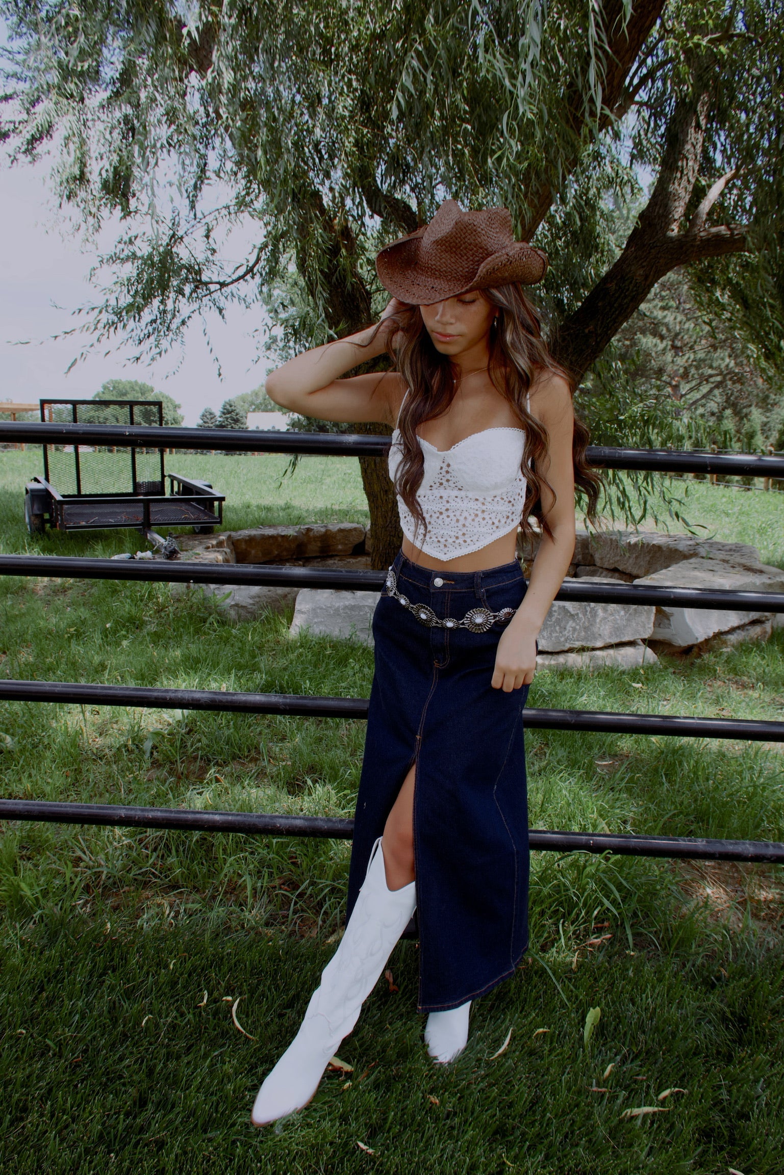 Our Abbie Crochet Bandana Tank is a cropped tank top with a sheer crochet fabric and a bandana hemline with a scalloped detail. This top features an emphasized bustline with lined bust cups and a bustline stitch. This top has two adjustable thin straps and the closure is a self tie string in the back giving this top a comfortable fit.