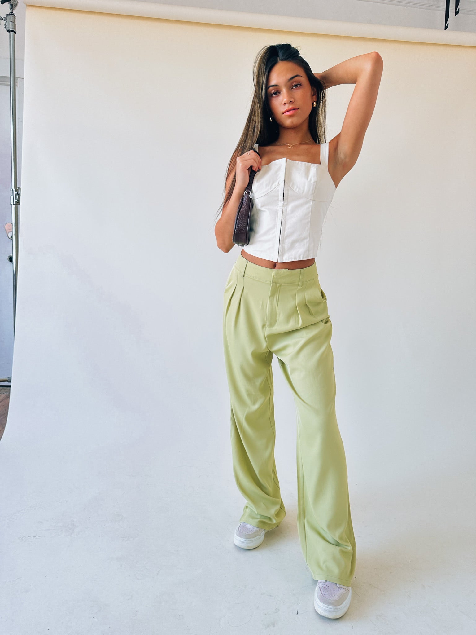 Our Eve Sculpted Bustier is a fitted crop top that features hook and eye clasp closure details up the front to give it a bustier look, thick shoulder straps (not adjustable), with a square neckline with rounded corners, and an asymmetrical hemline. This top has stitching emphasizing the bust line that gives this top a figure flattering and structured fit. This item has little to no stretch, so we recommend sizing up if you are in between sizes.