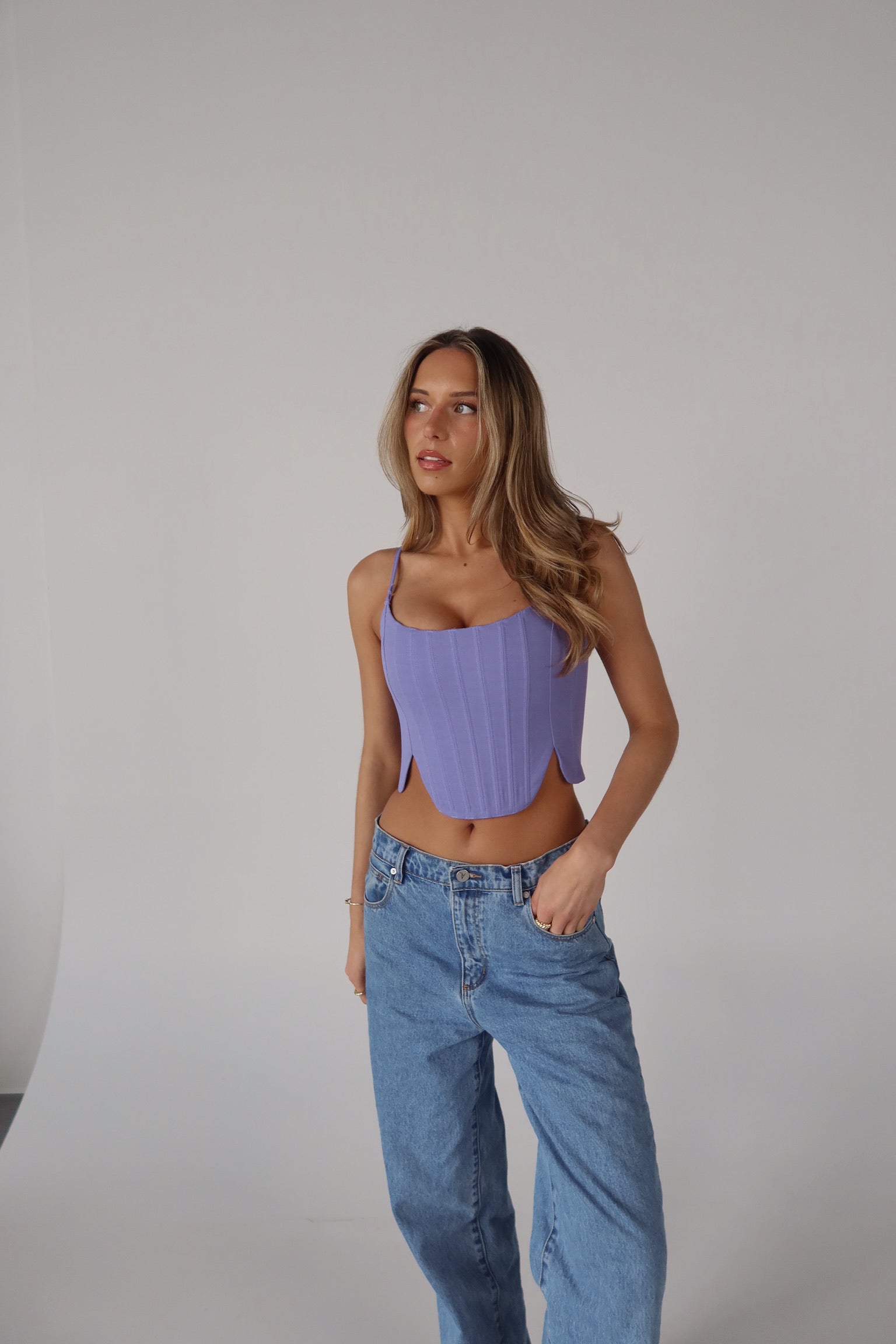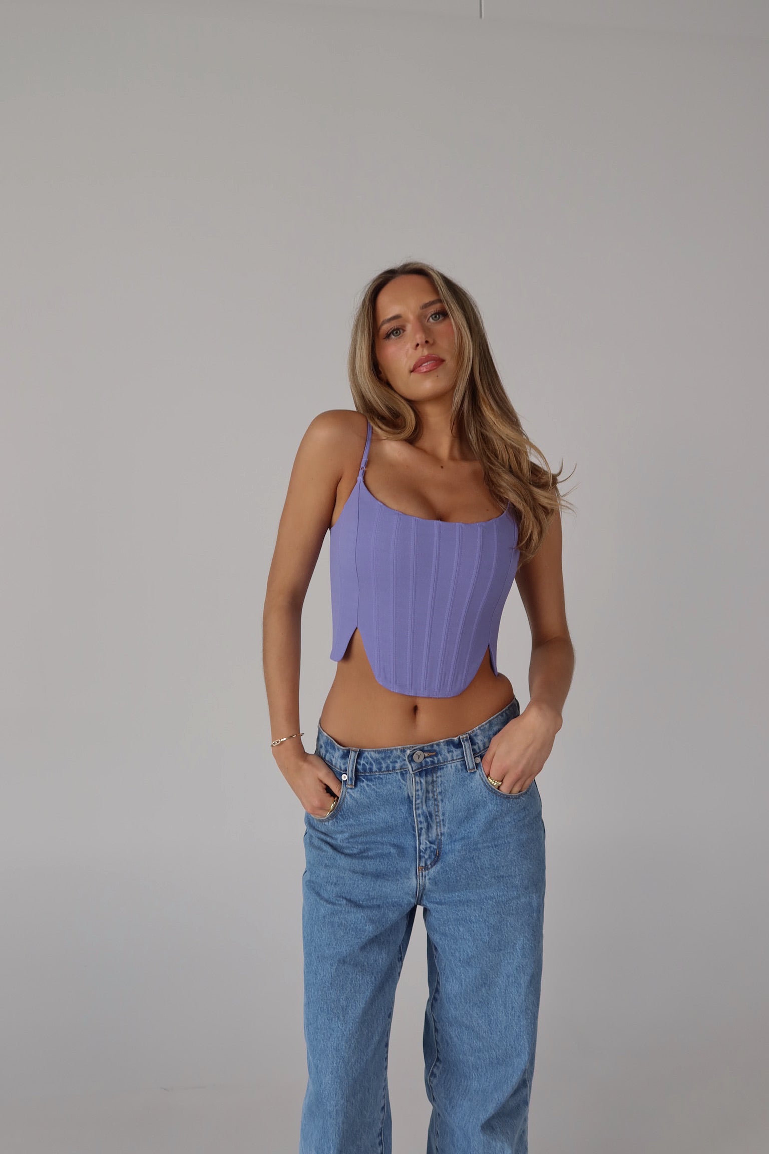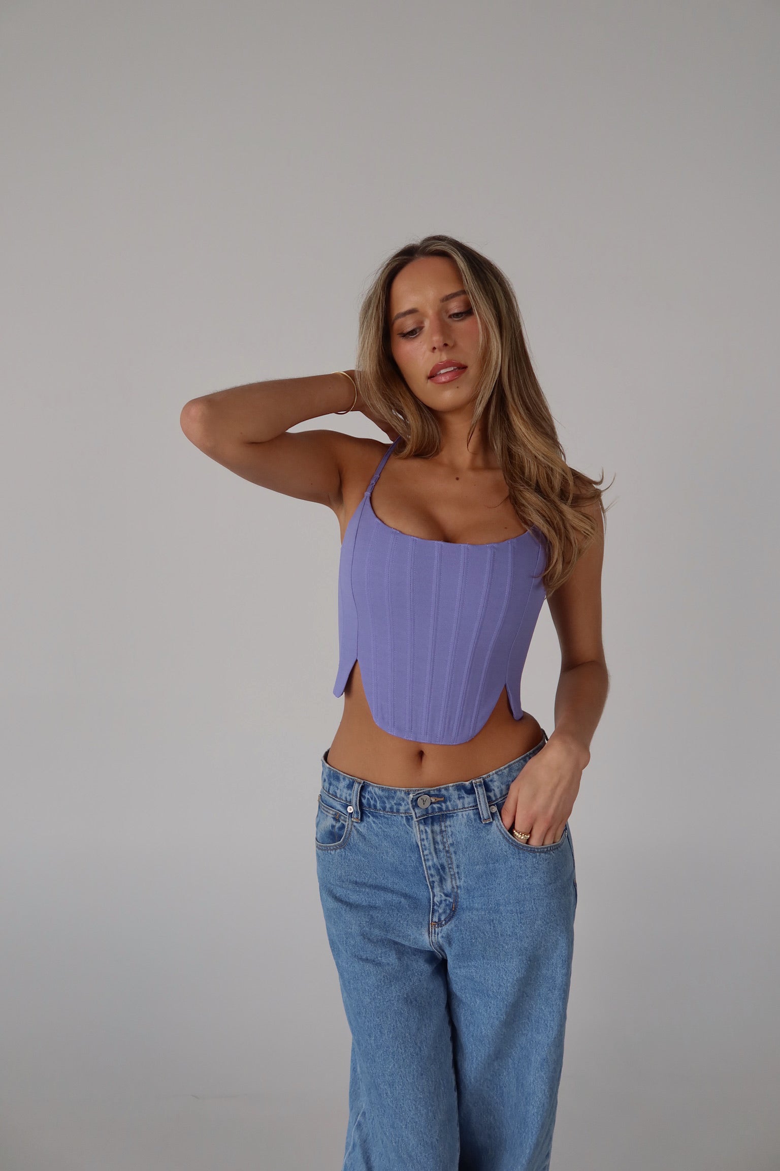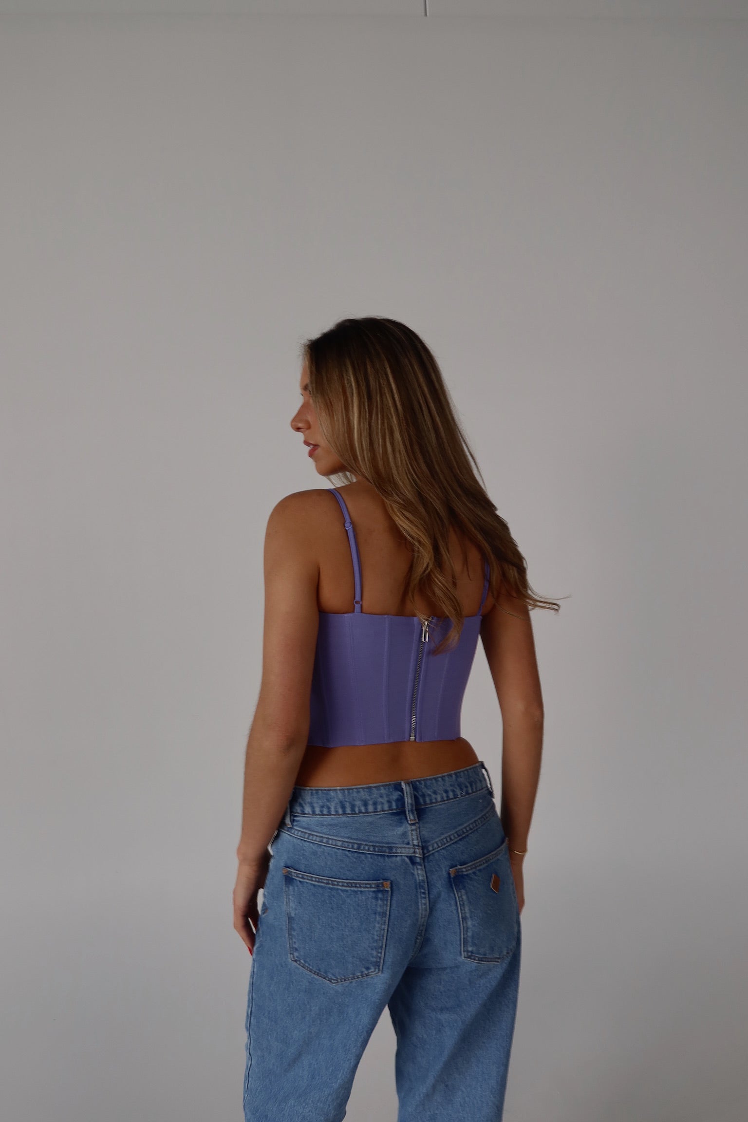 Our Lena Corset Top is a fitted corset top with a scalloped hemline. This corset top features structural boning throughout the front and back of the bodice, adjustable straps, and square neckline. This top is completed with an exposed zipper closure.The fabric of this top is double LINED and has a good stretch to it!