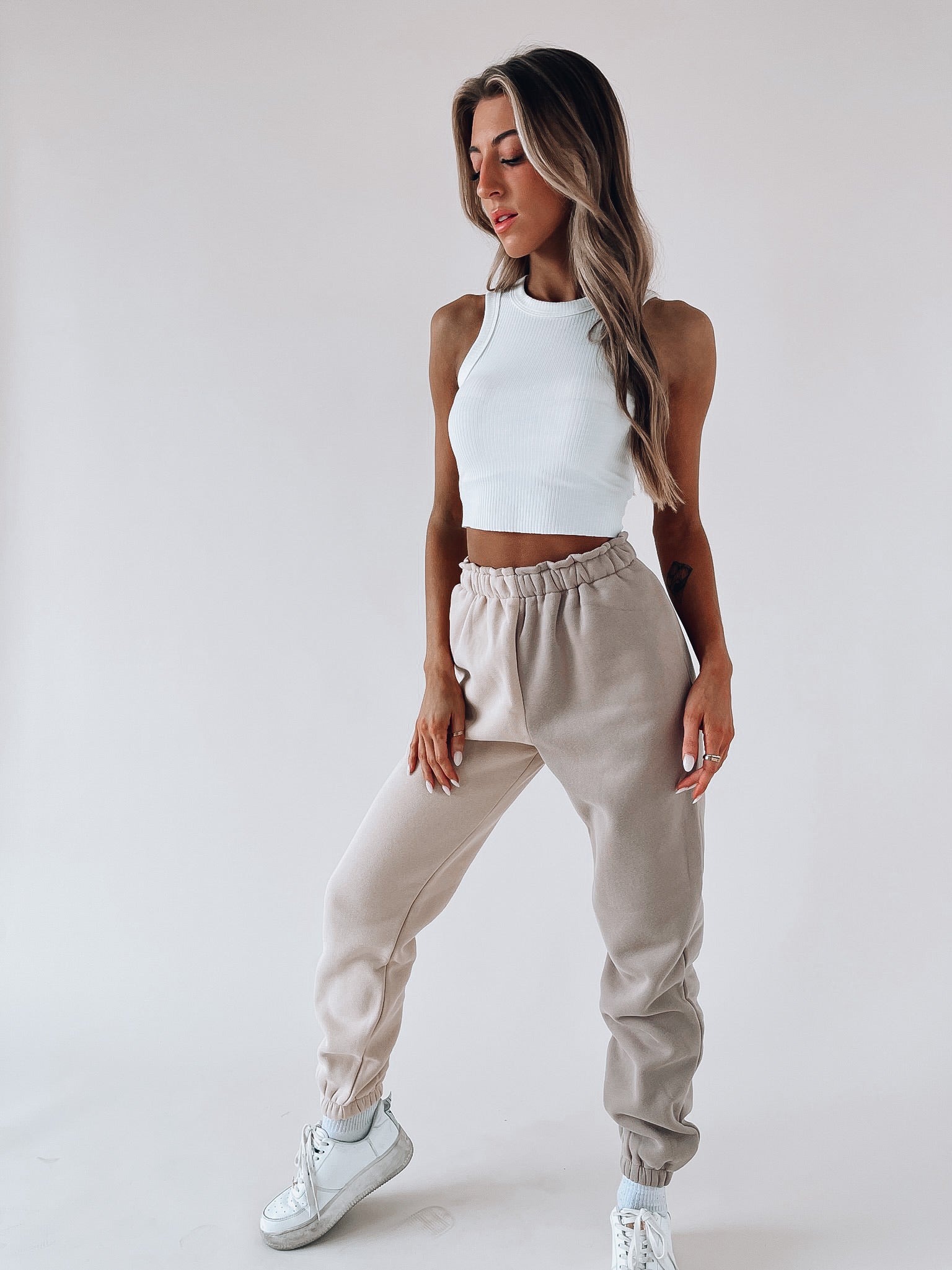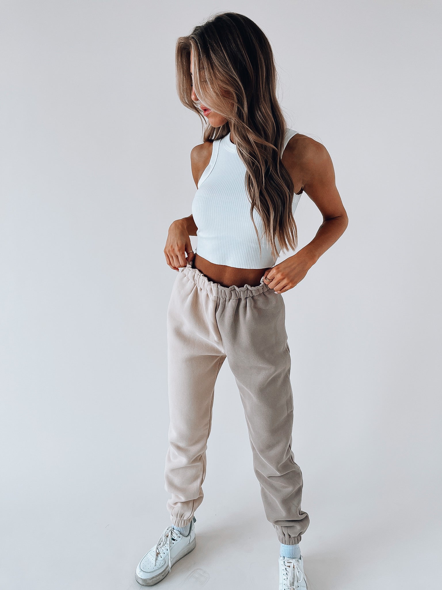 Our Kiki Ribbed Ivory Crop Tank is lightweight and has a snoop neck neckline. This is the perfect everyday tank!