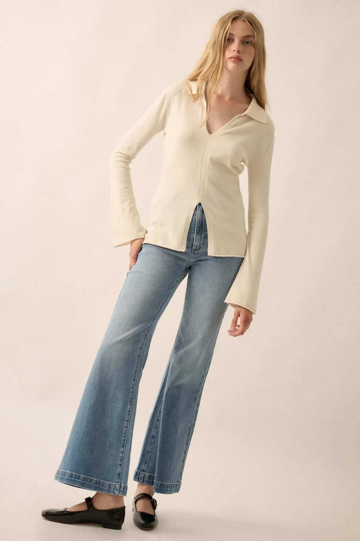 Promise the Label Brushed Knit Split-Front Top