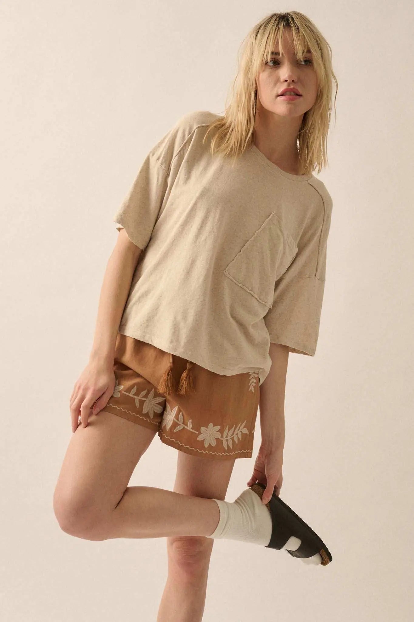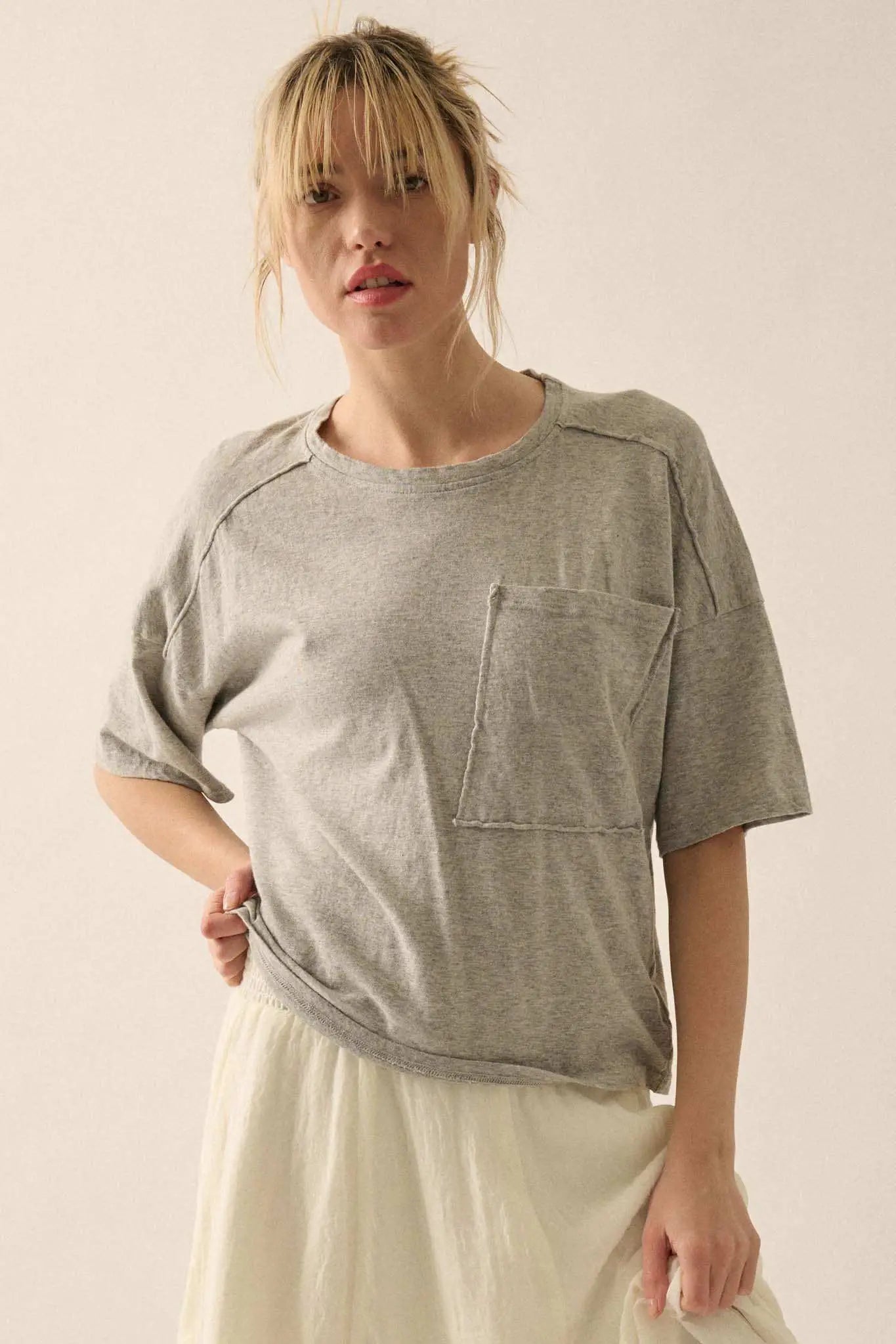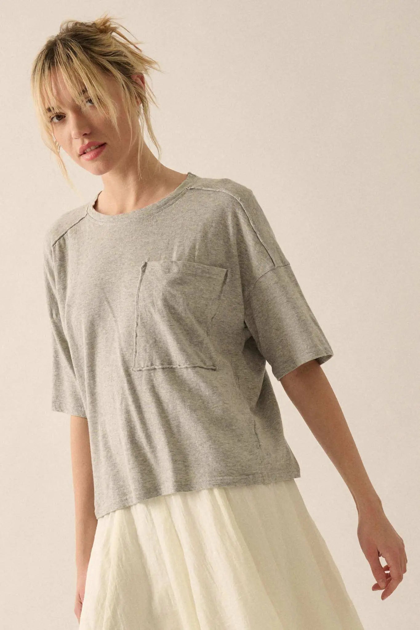 Easy Fit Raw-Edge Loose-Fit Pocket Tee - ShopPromesa