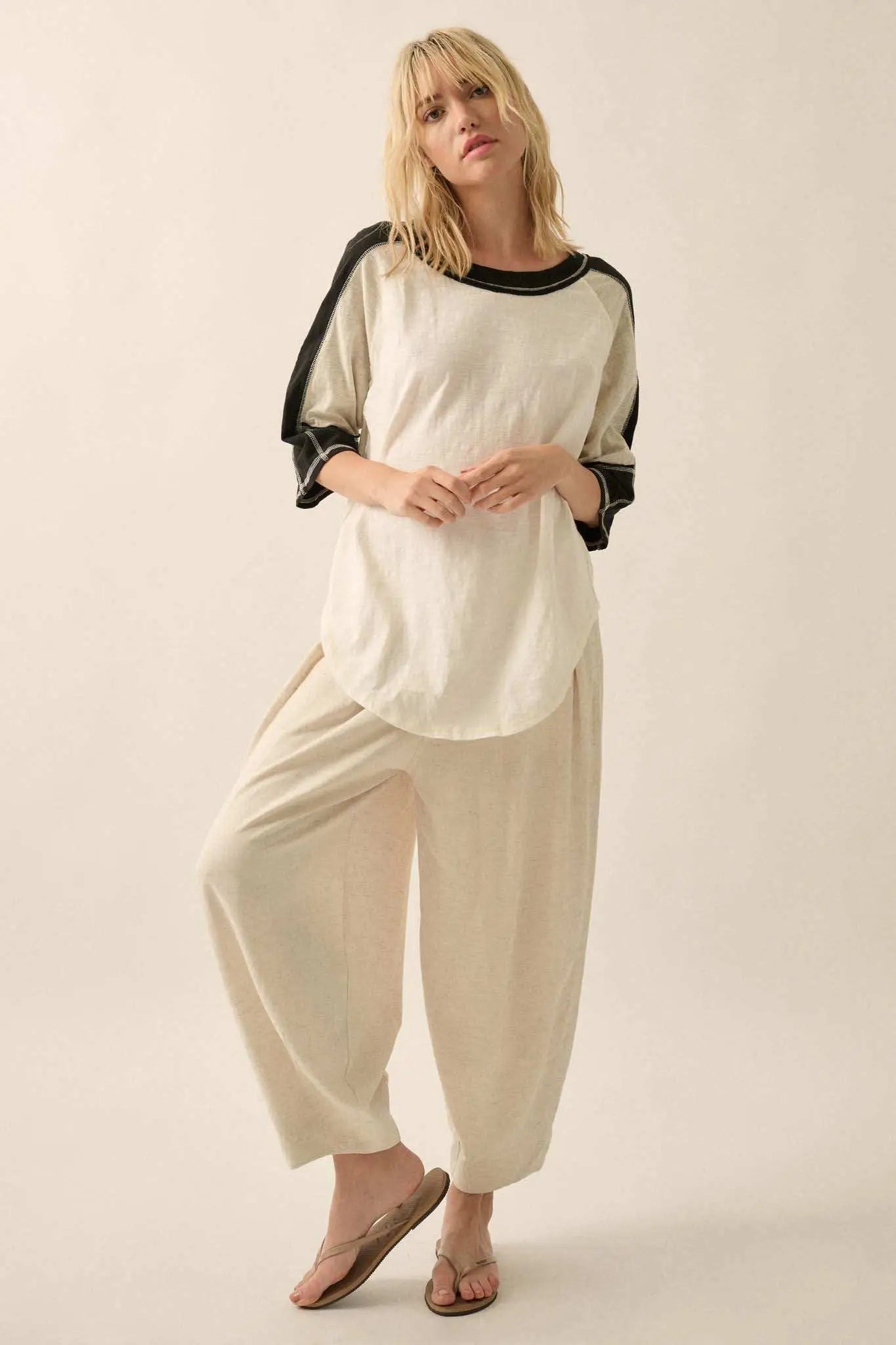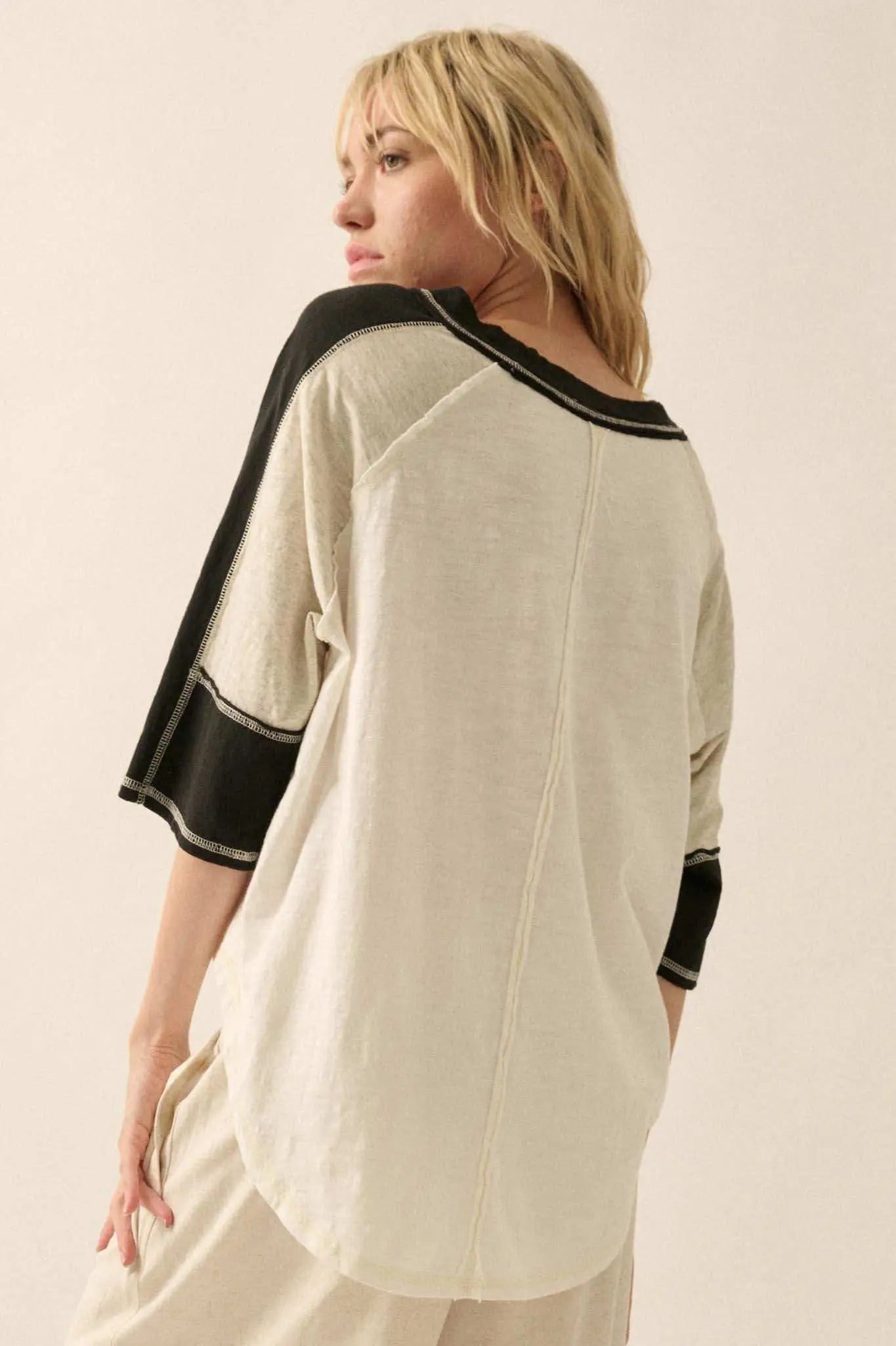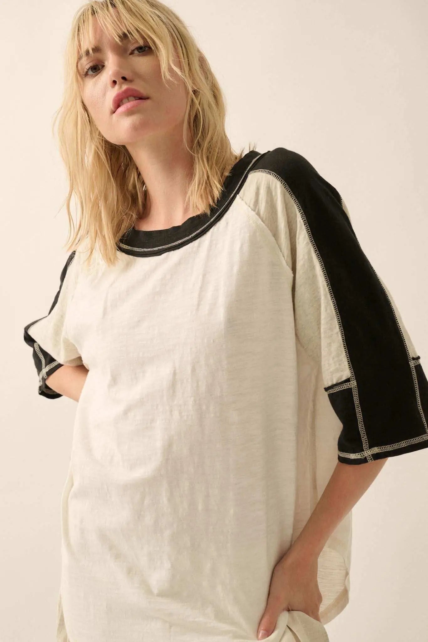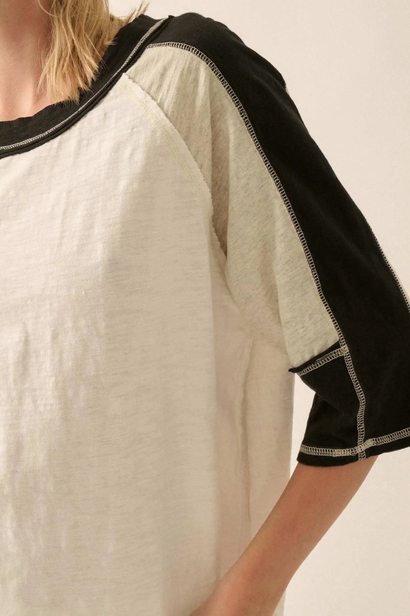 Easy Fit Colorblock Raw-Edge Oversize Raglan Tee