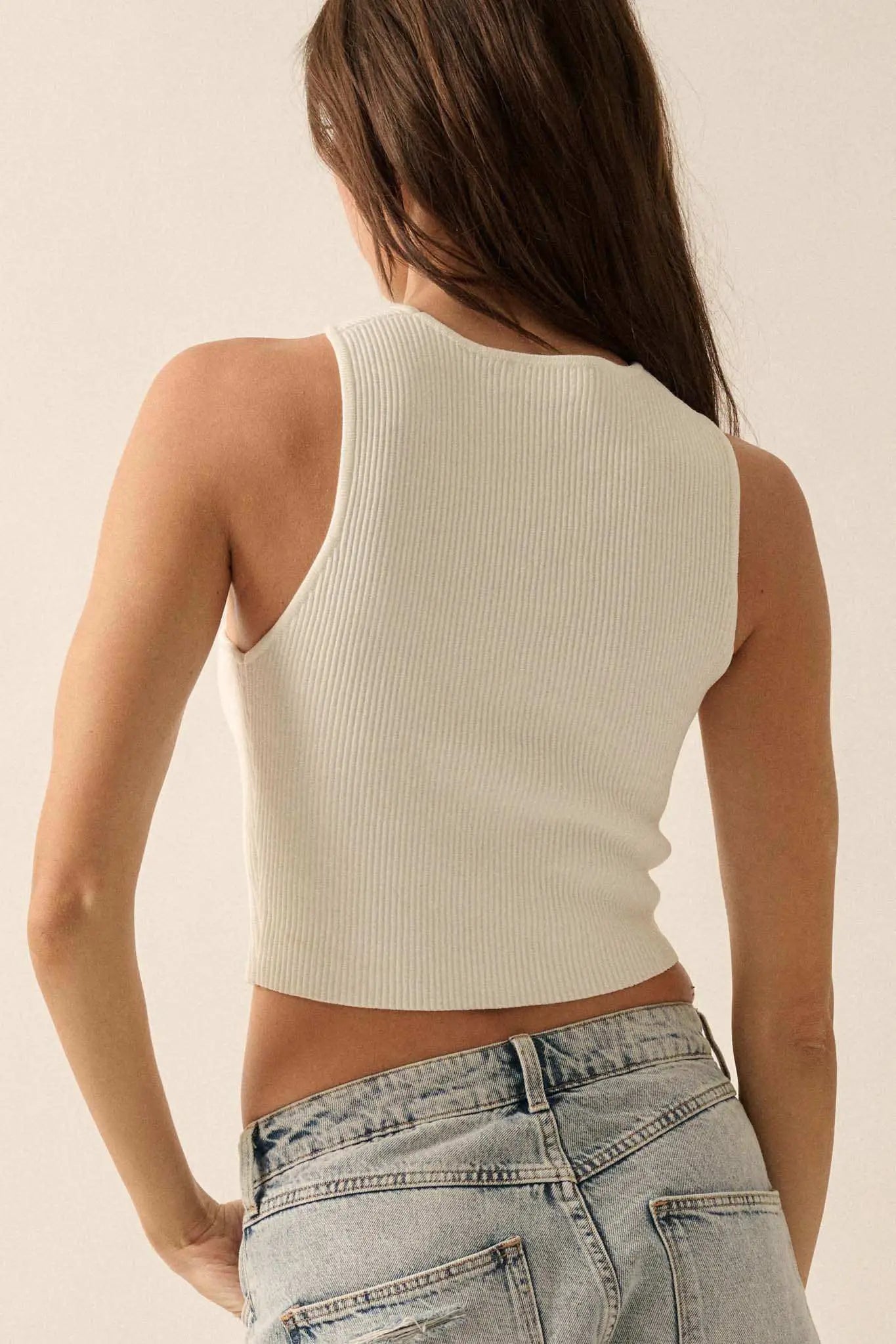 Shaper Fit Rib-Knit Asymmetrical Cropped Tank Top
