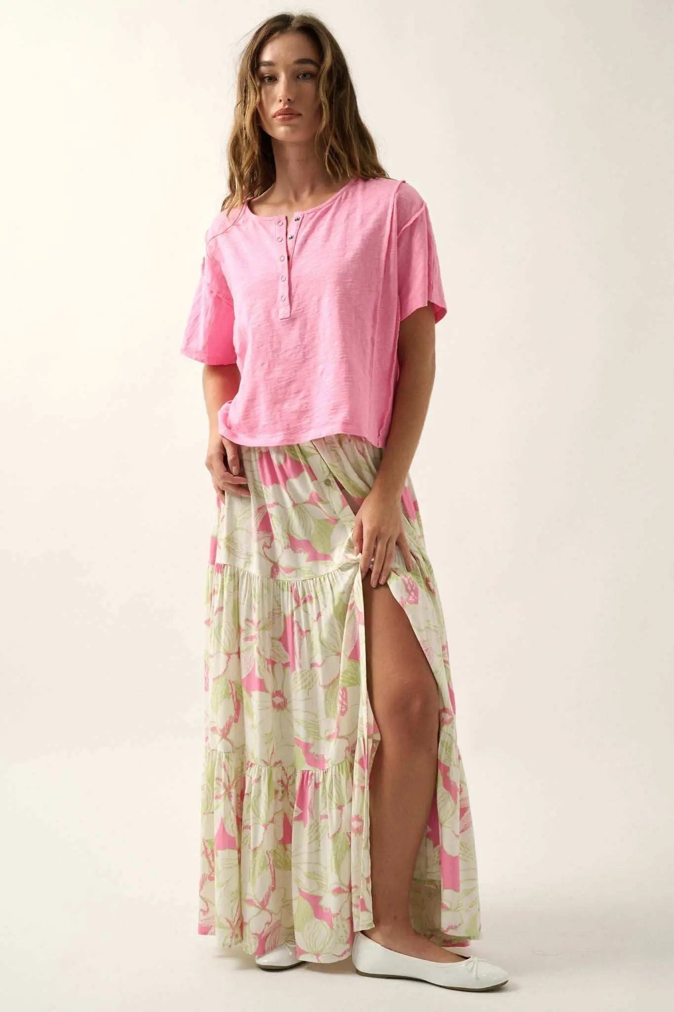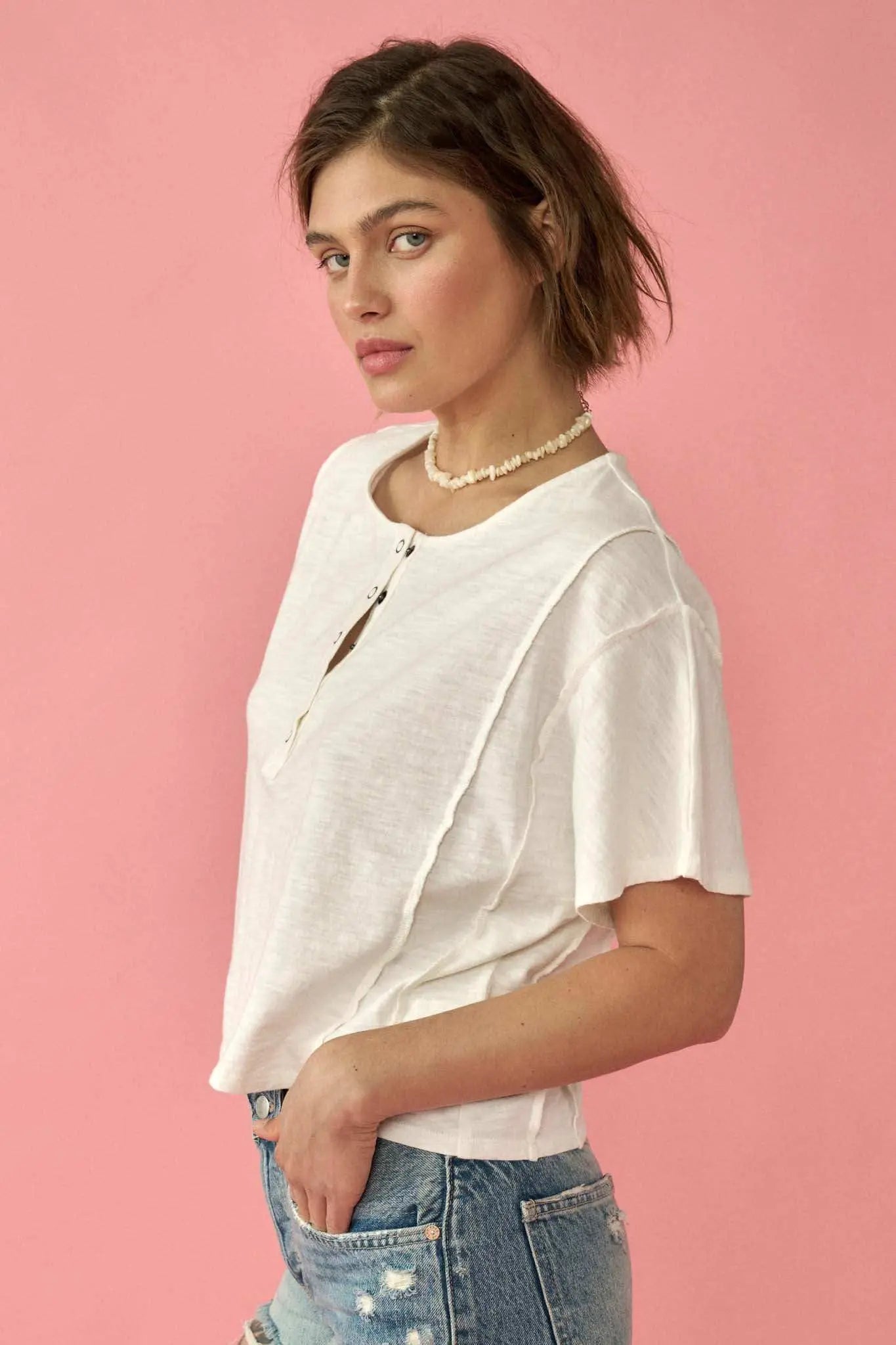 Easy Fit Vintage-Wash Slub Cotton Henley Tee