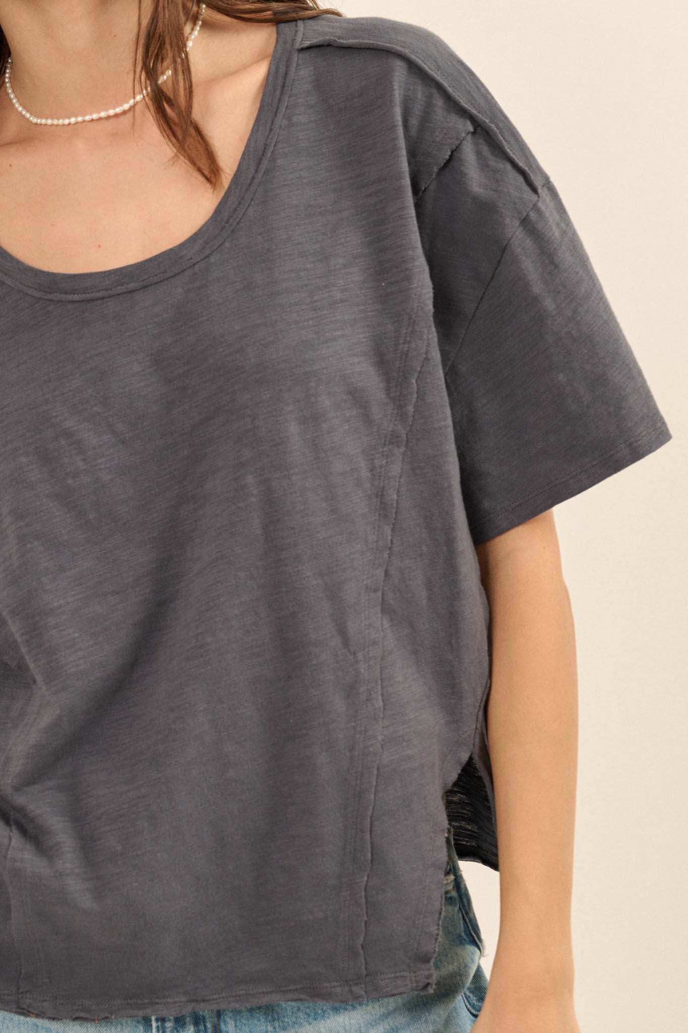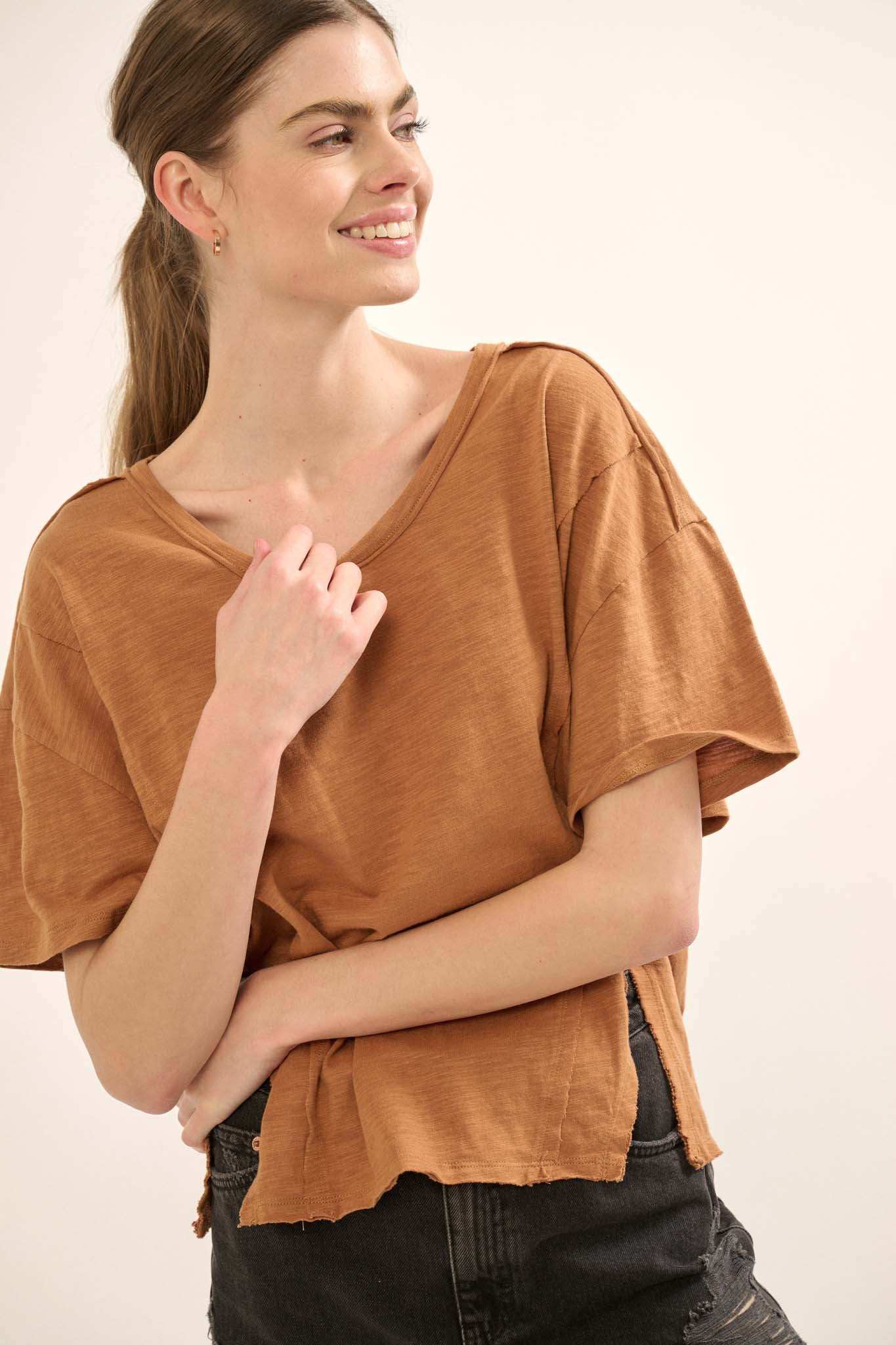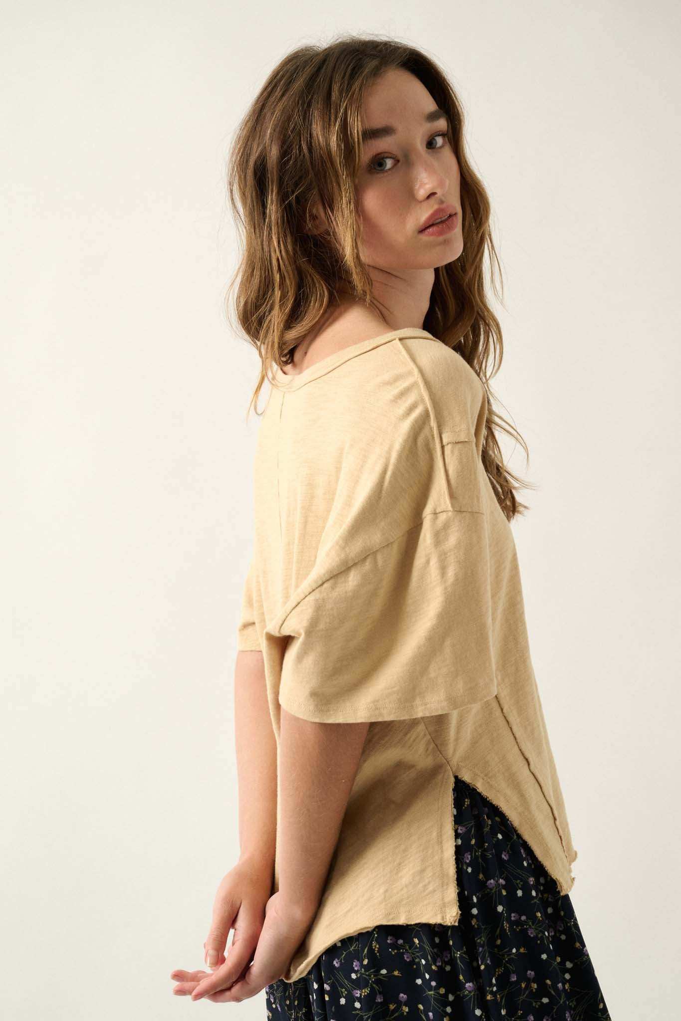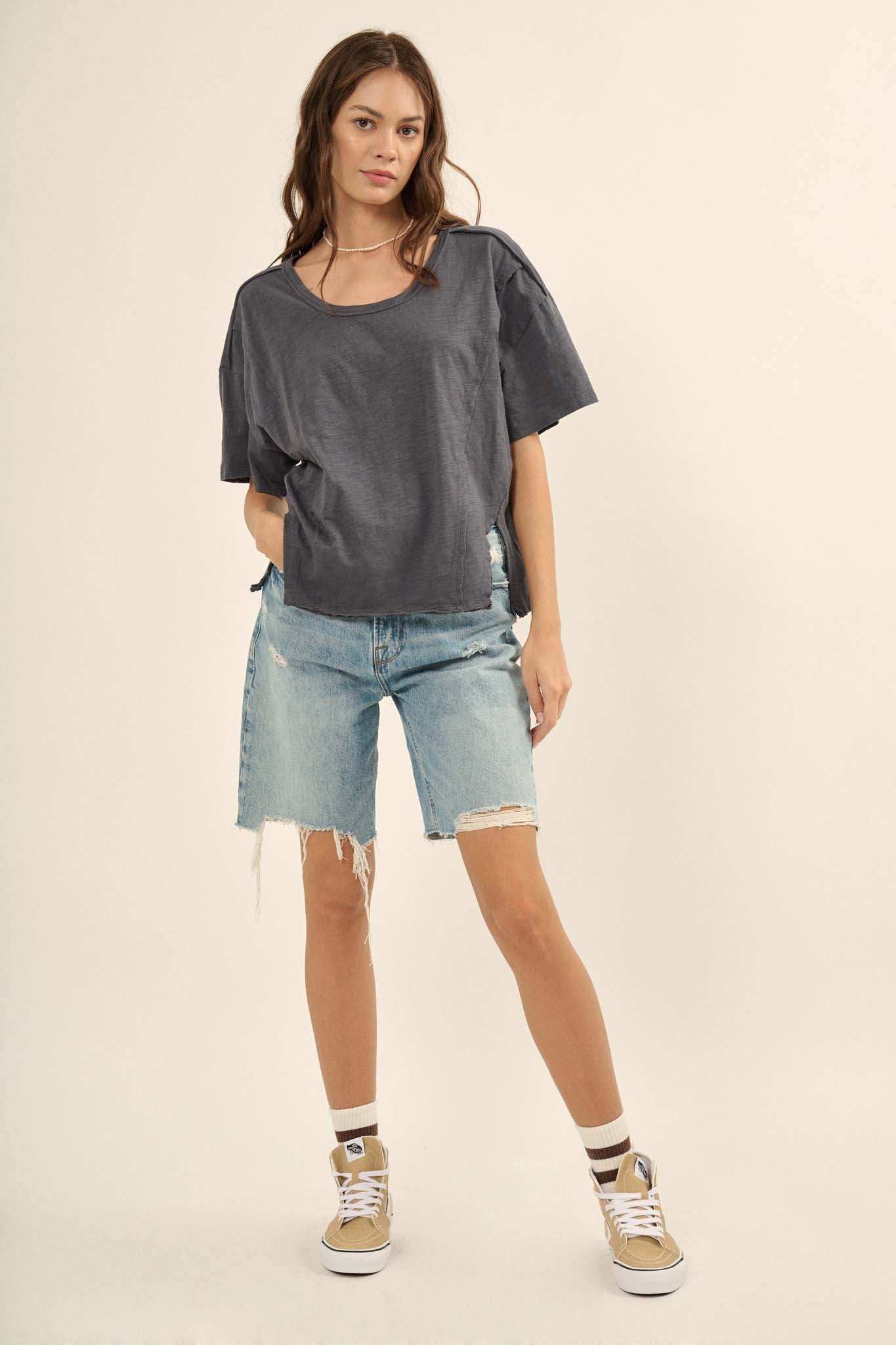 Easy Fit Vintage-Wash Slub Cotton Split-Hem Tee