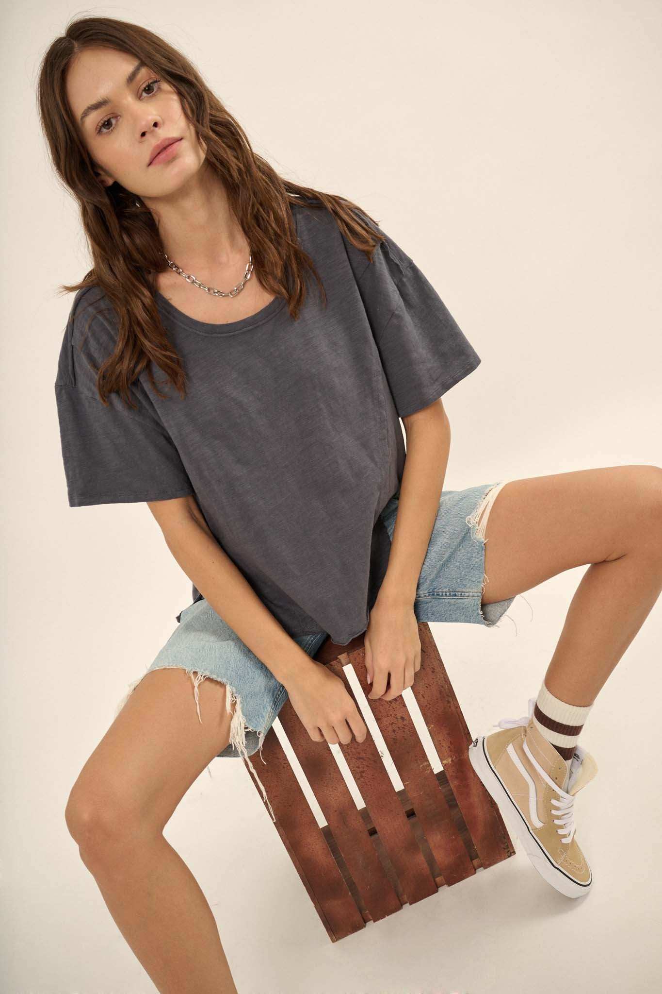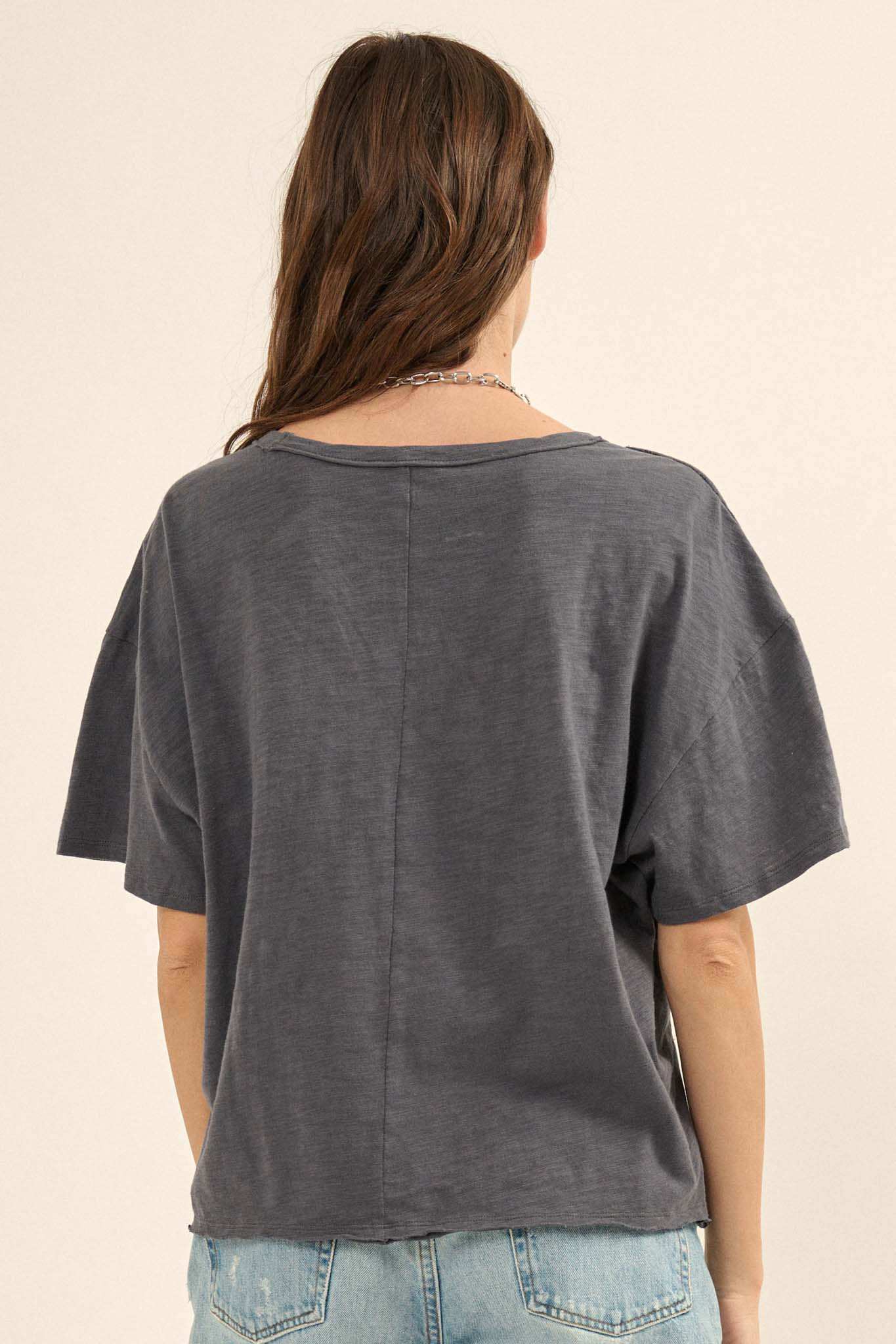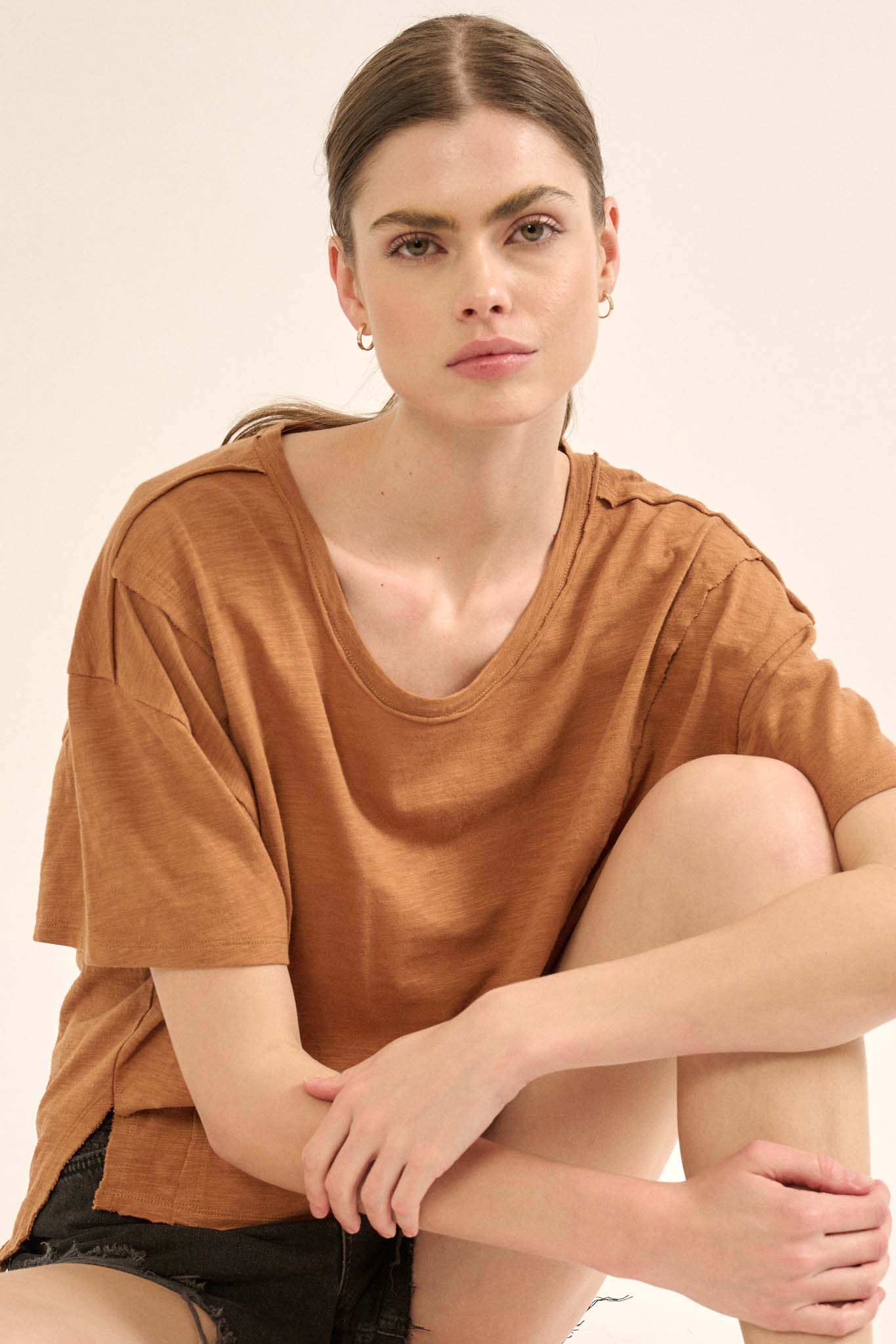 Easy Fit Vintage-Wash Slub Cotton Split-Hem Tee