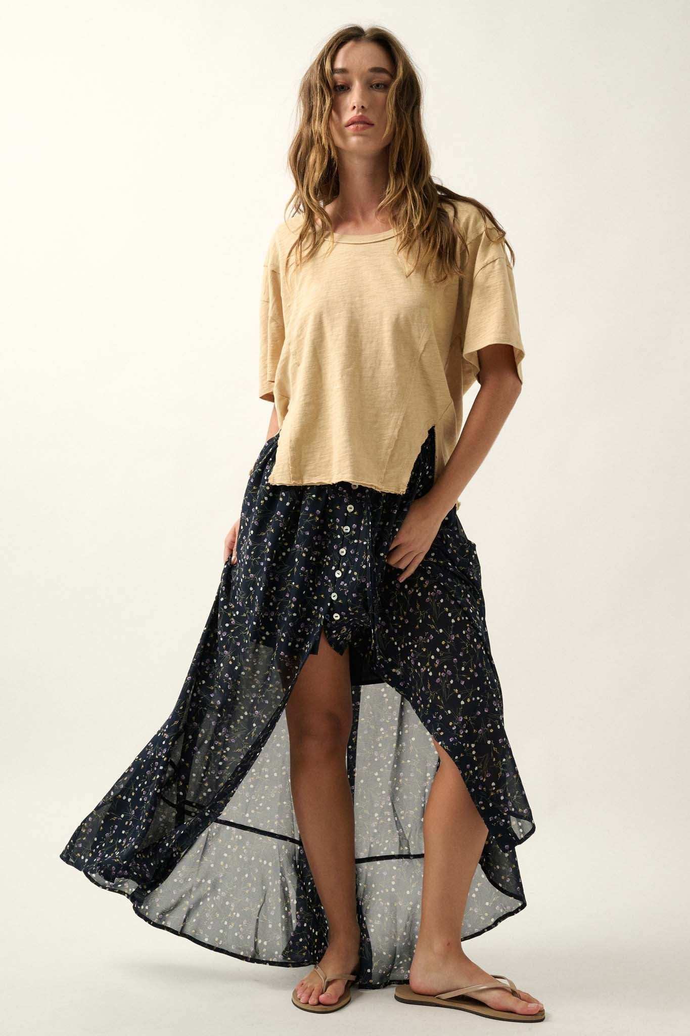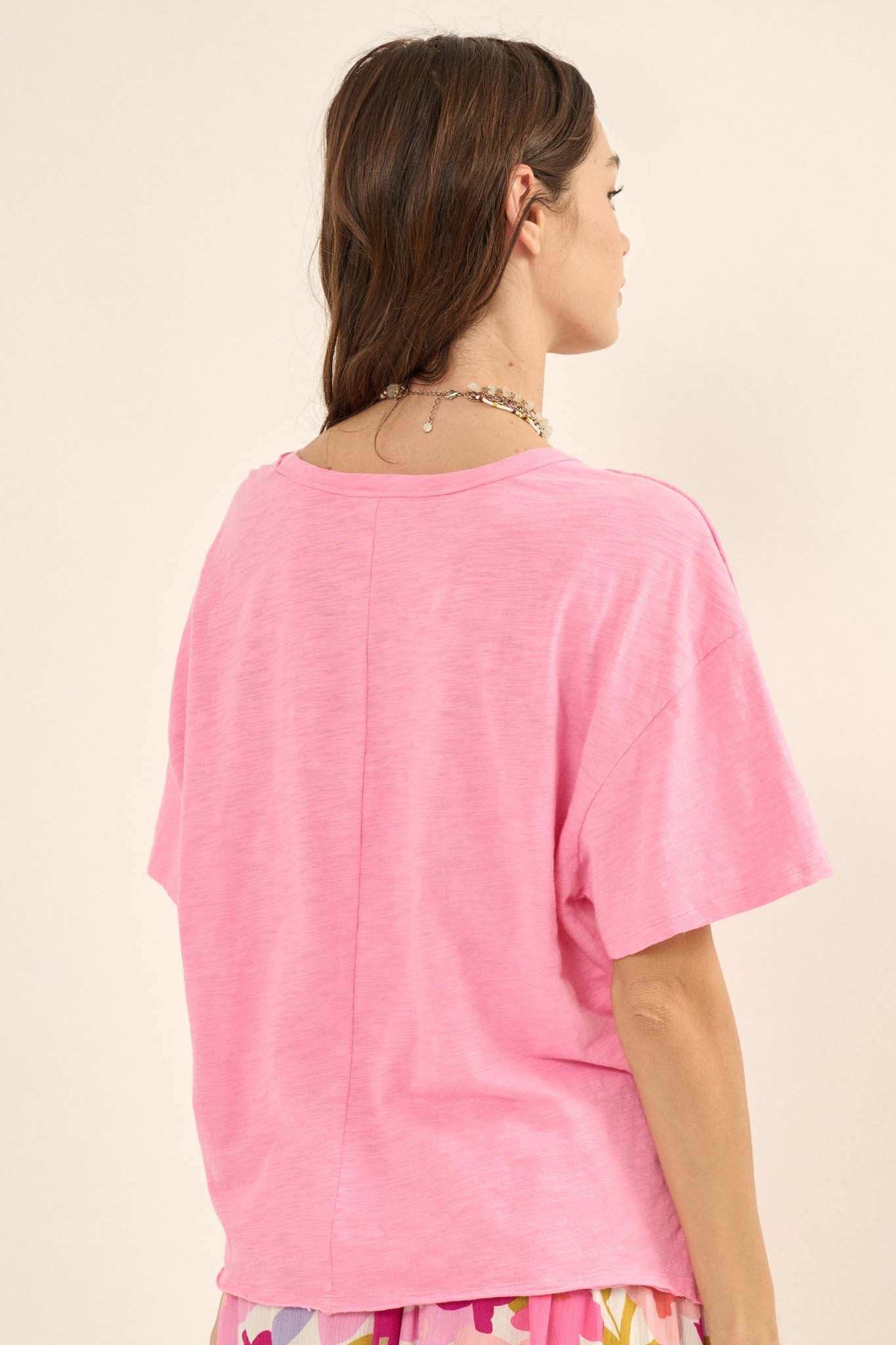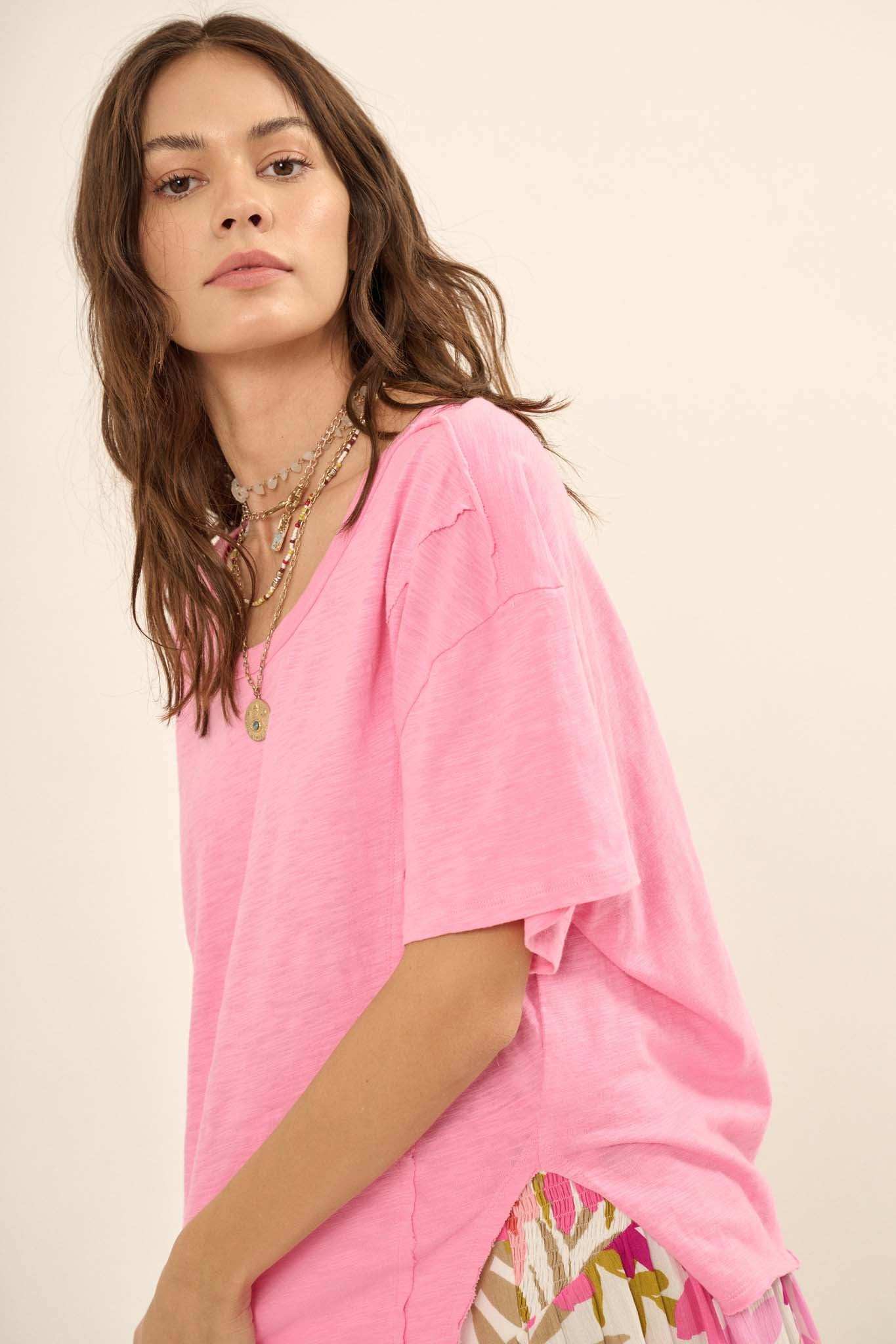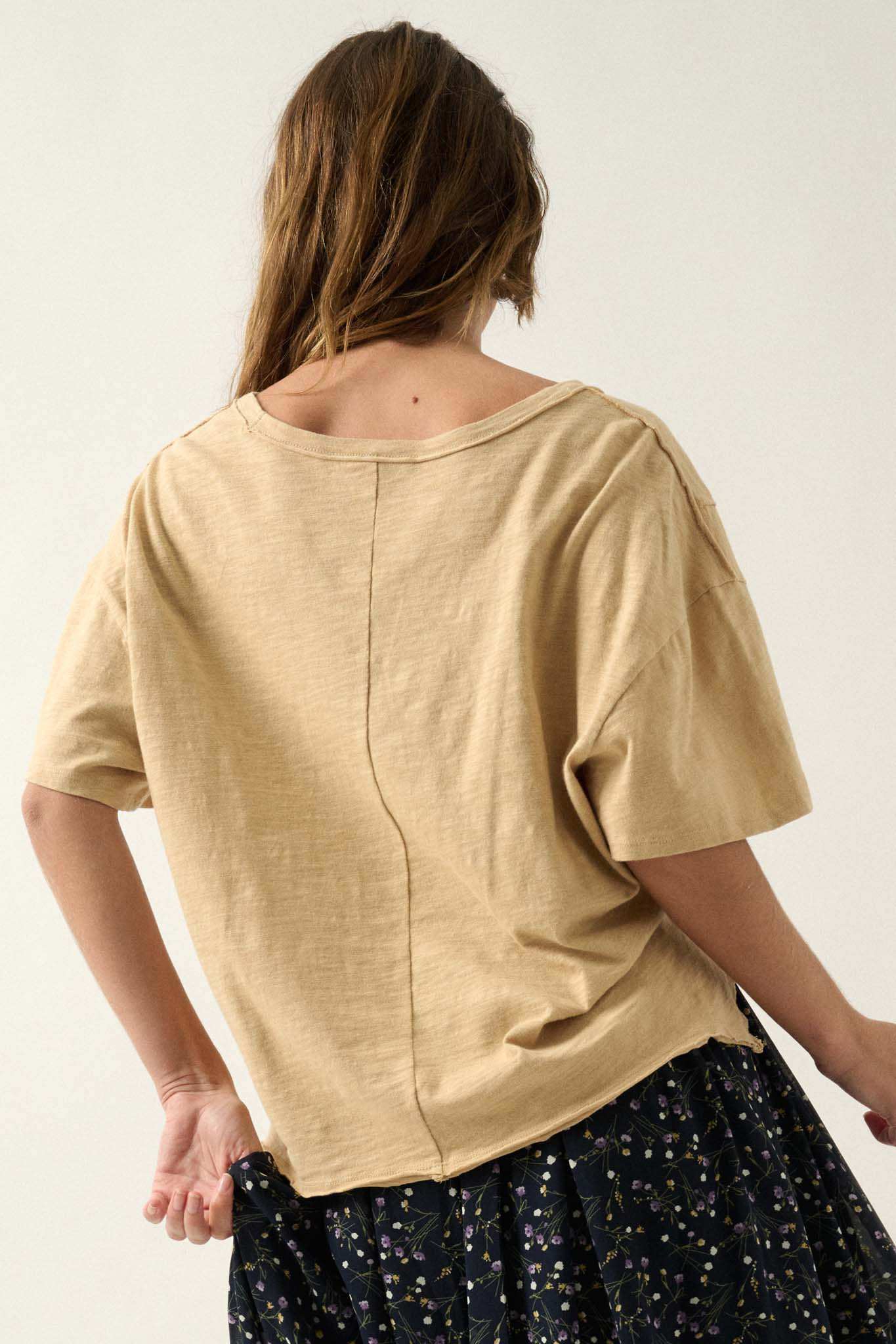 Easy Fit Vintage-Wash Slub Cotton Split-Hem Tee