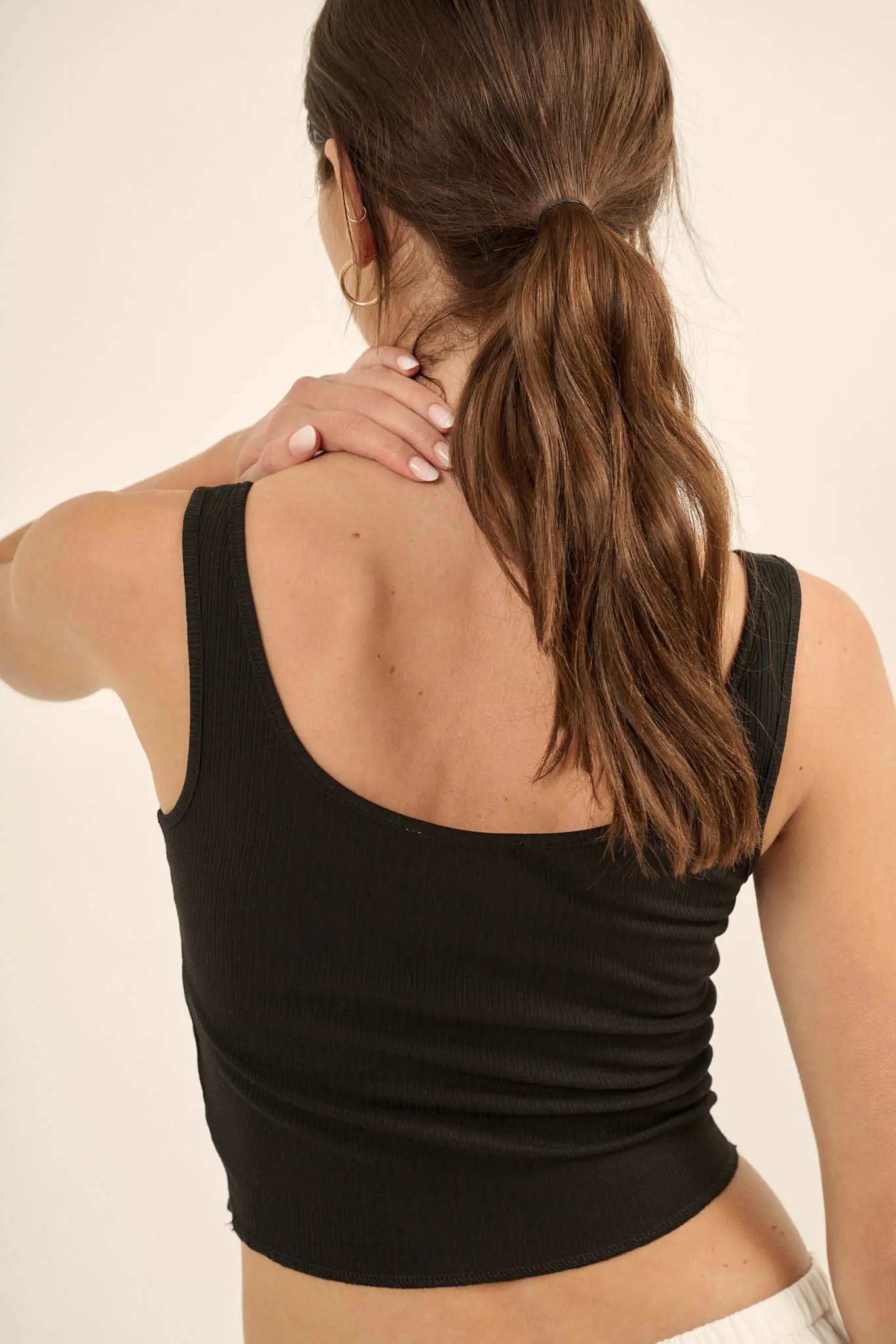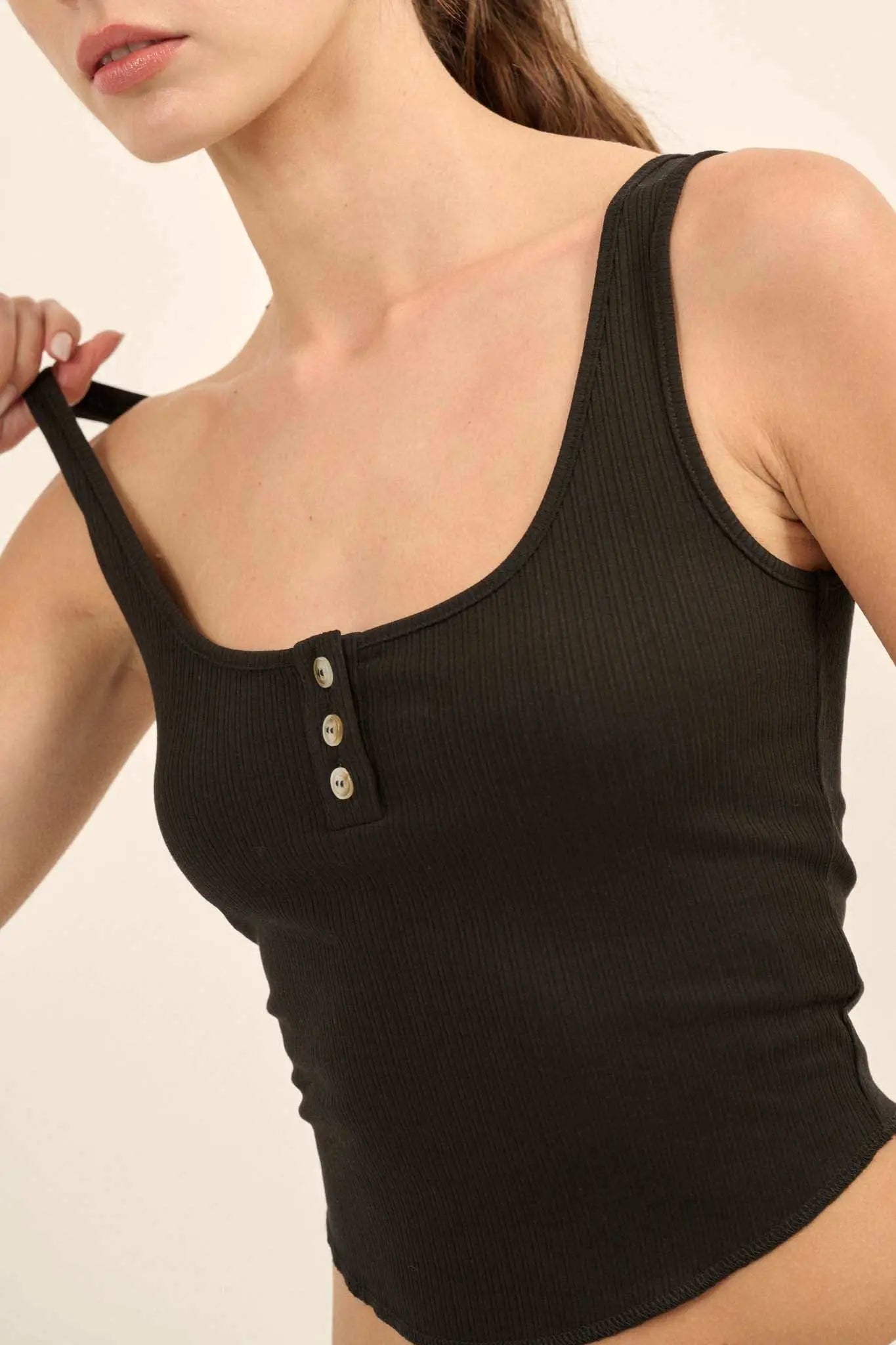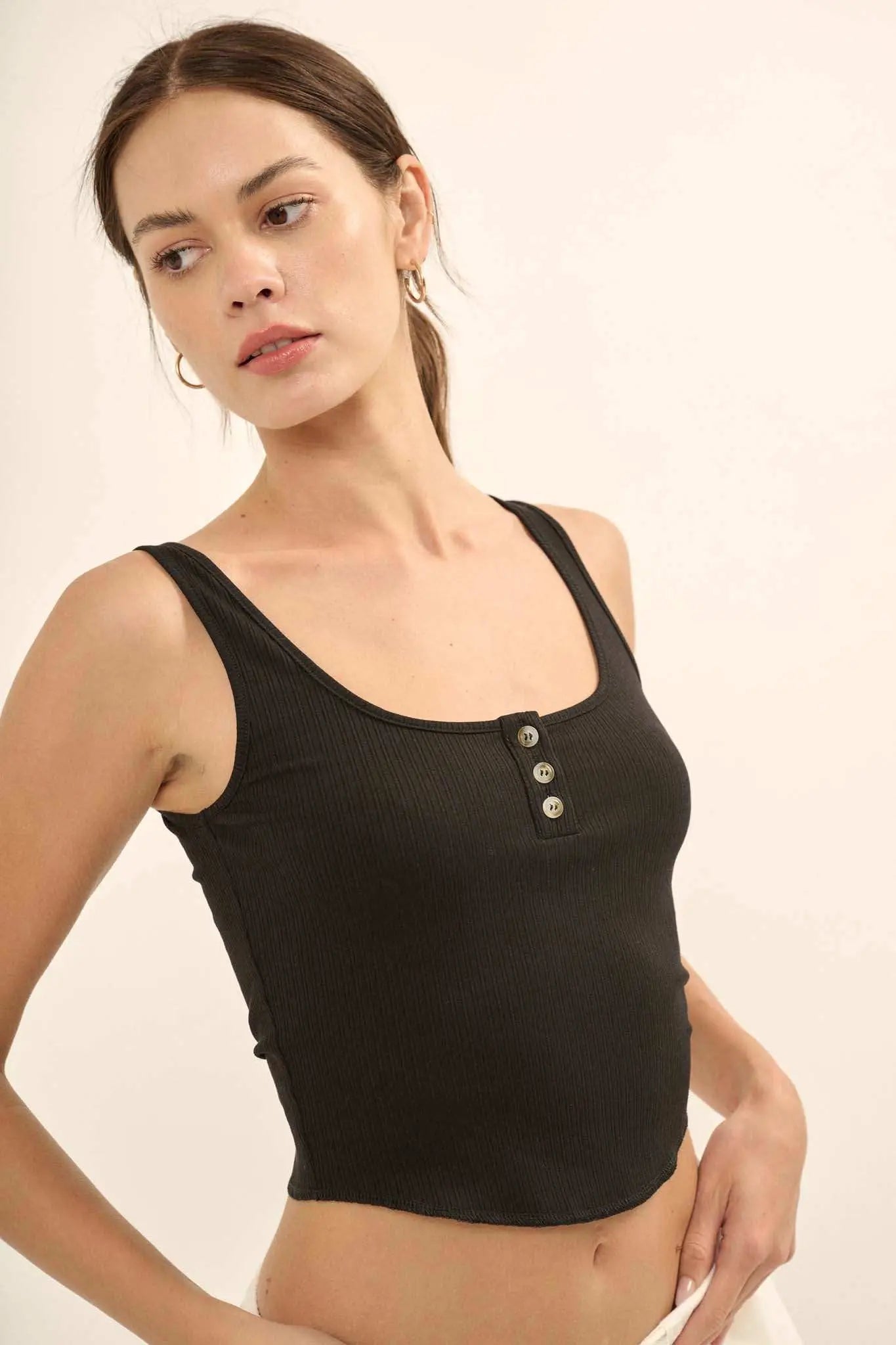 Promise the Label Rib-Knit Cropped Henley Tank Top