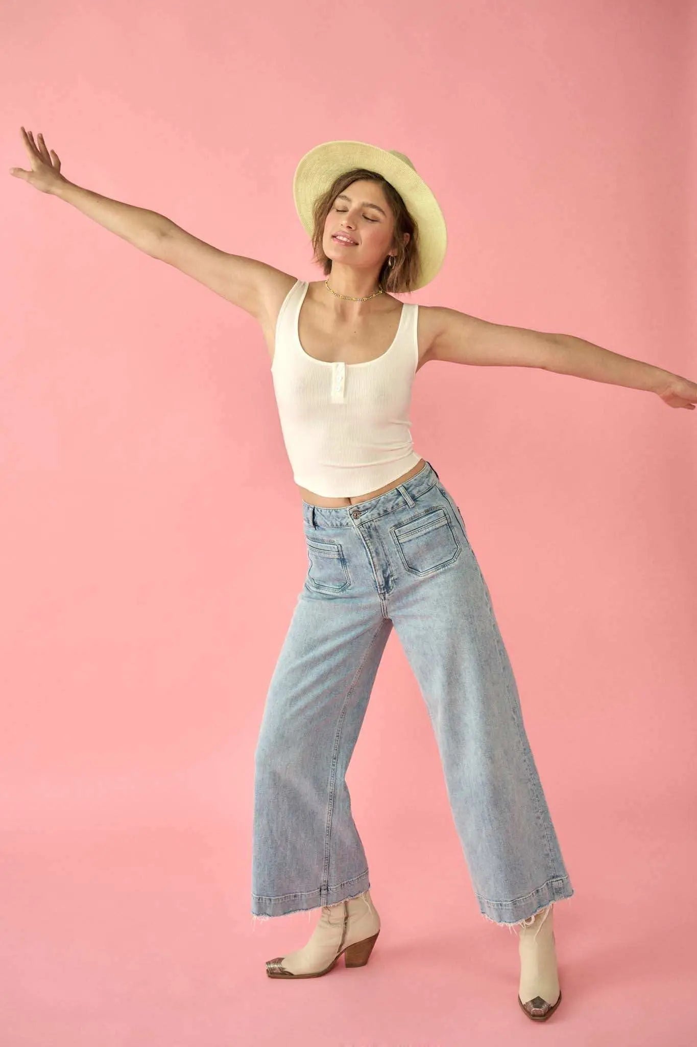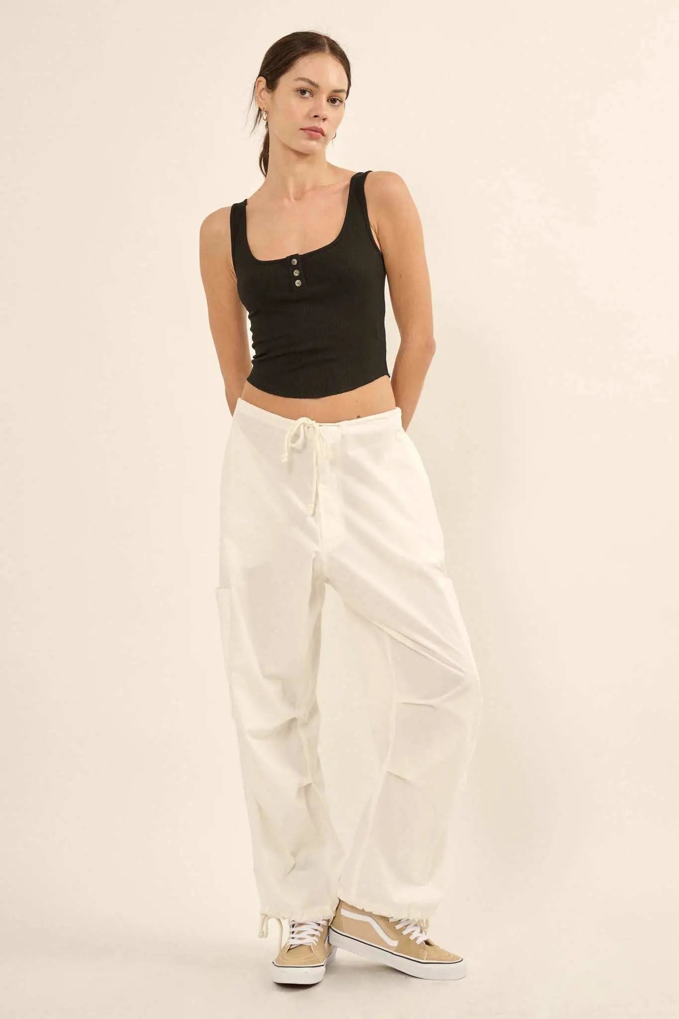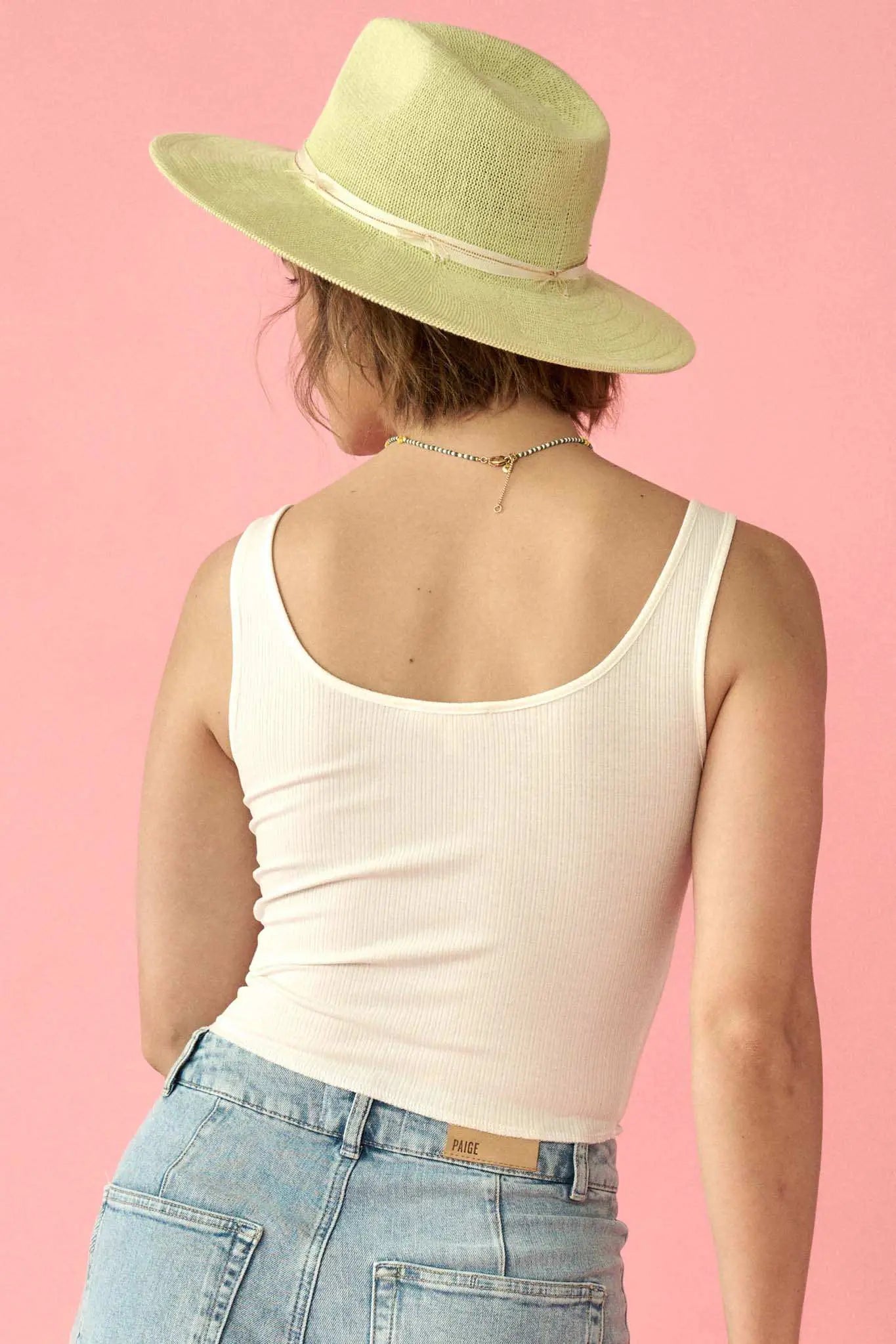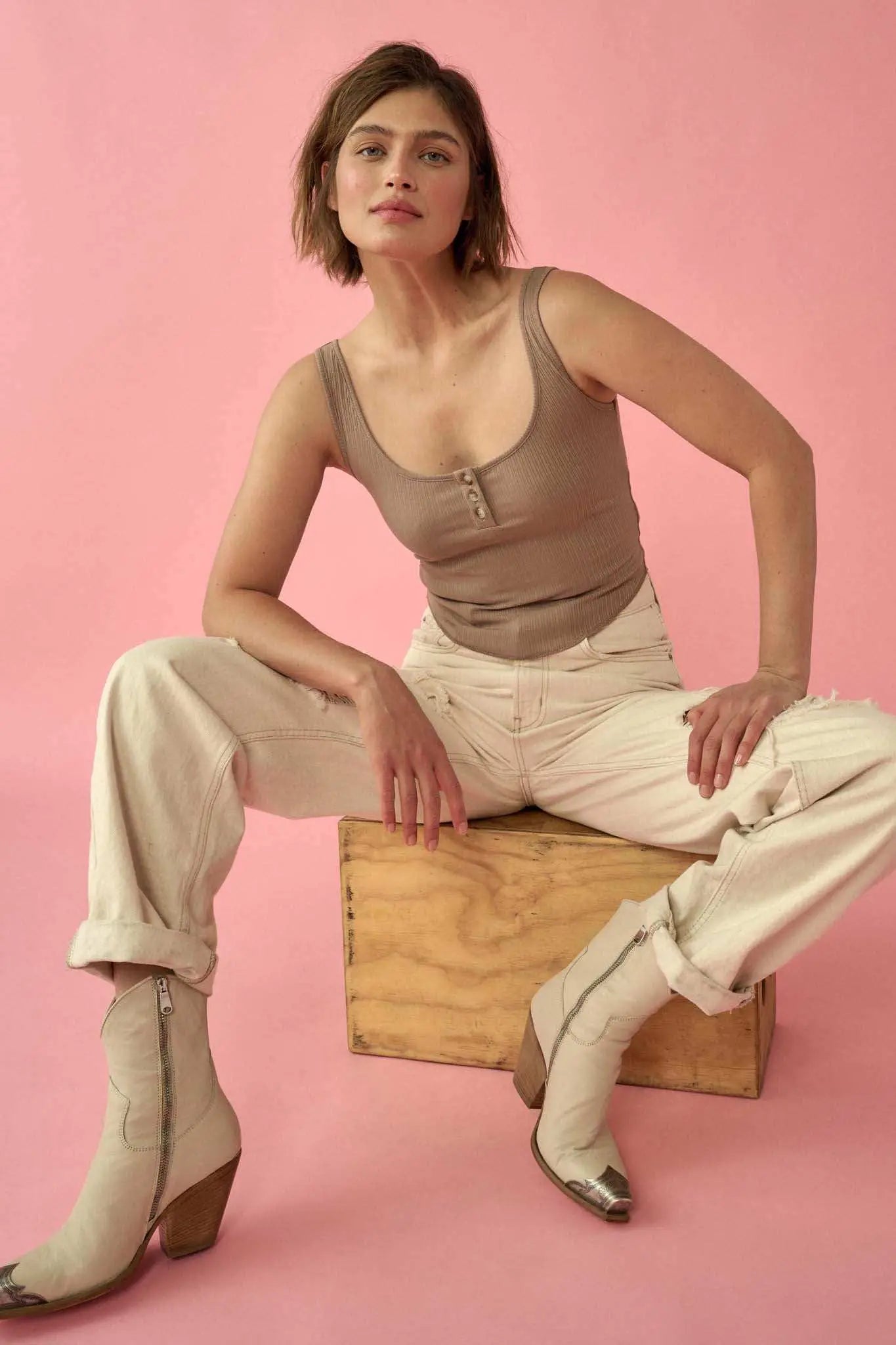 Promise the Label Rib-Knit Cropped Henley Tank Top