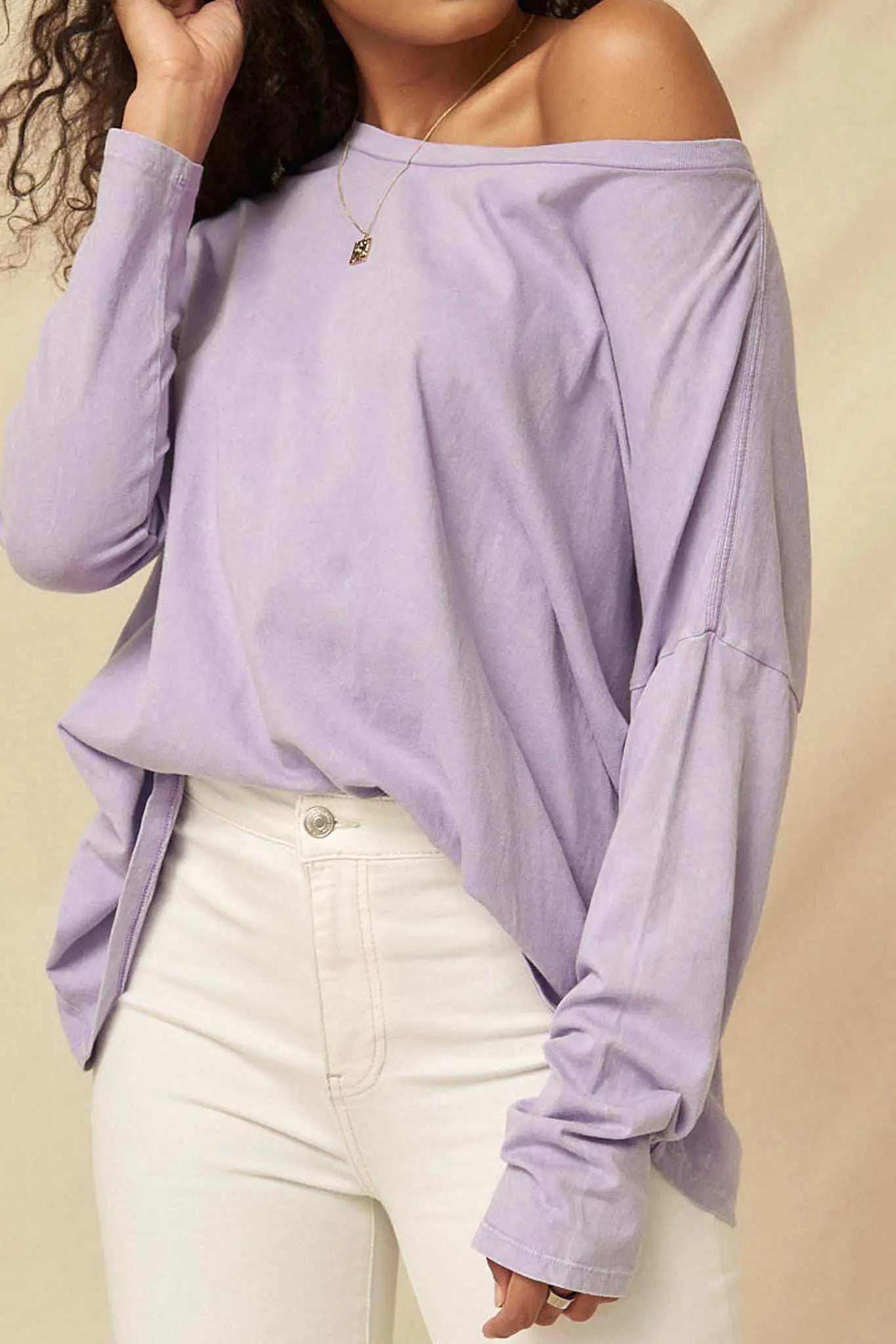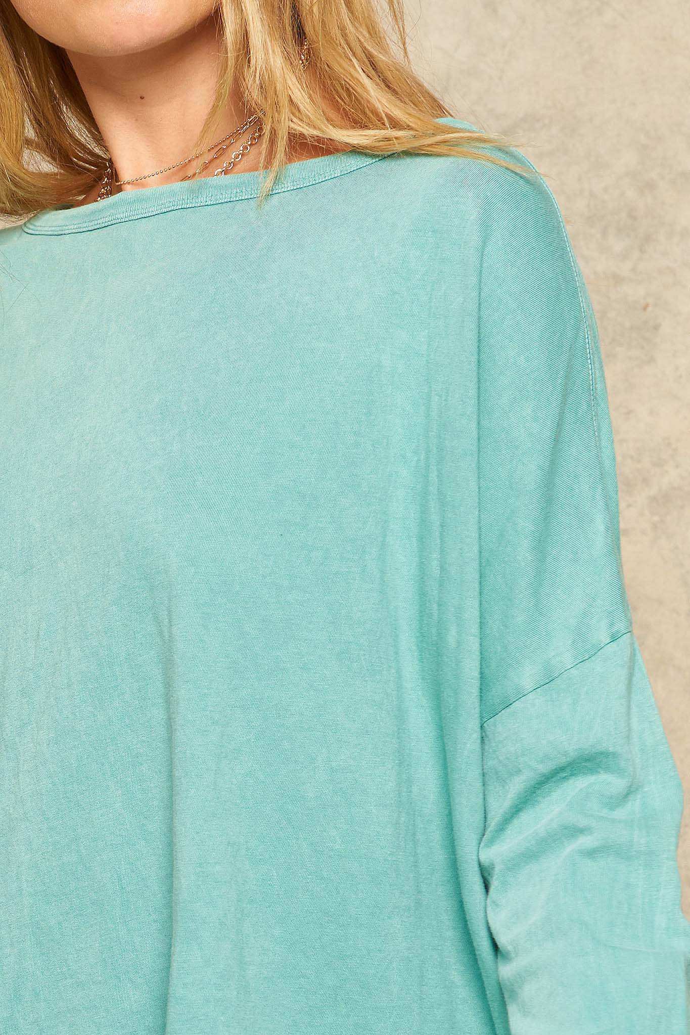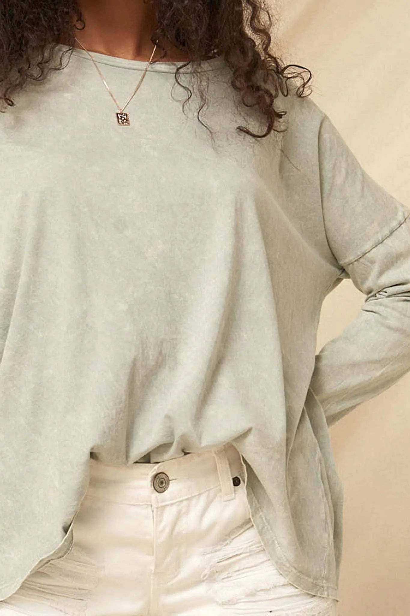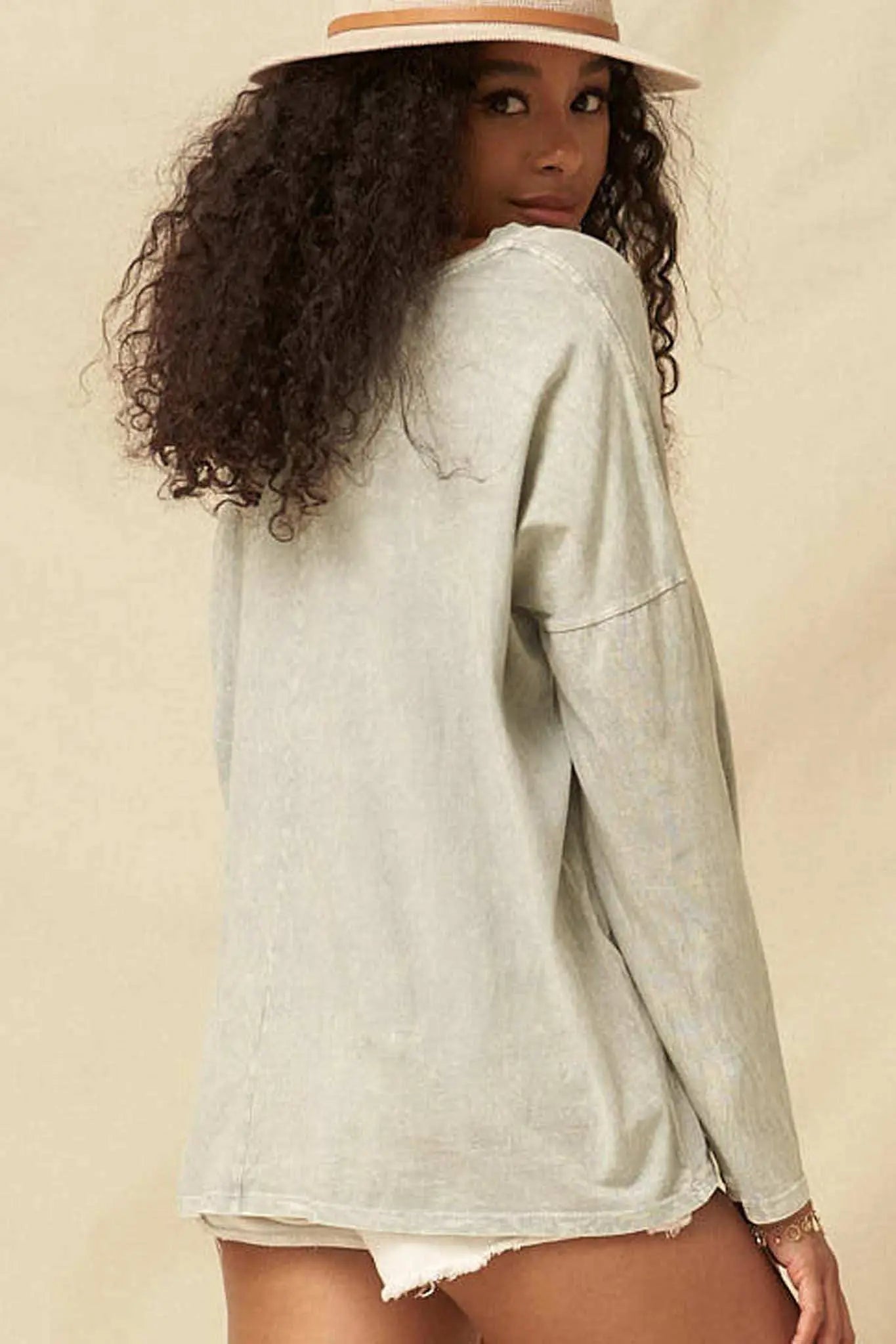 Big Happy Vintage-Washed Oversize Long-Sleeve Tee