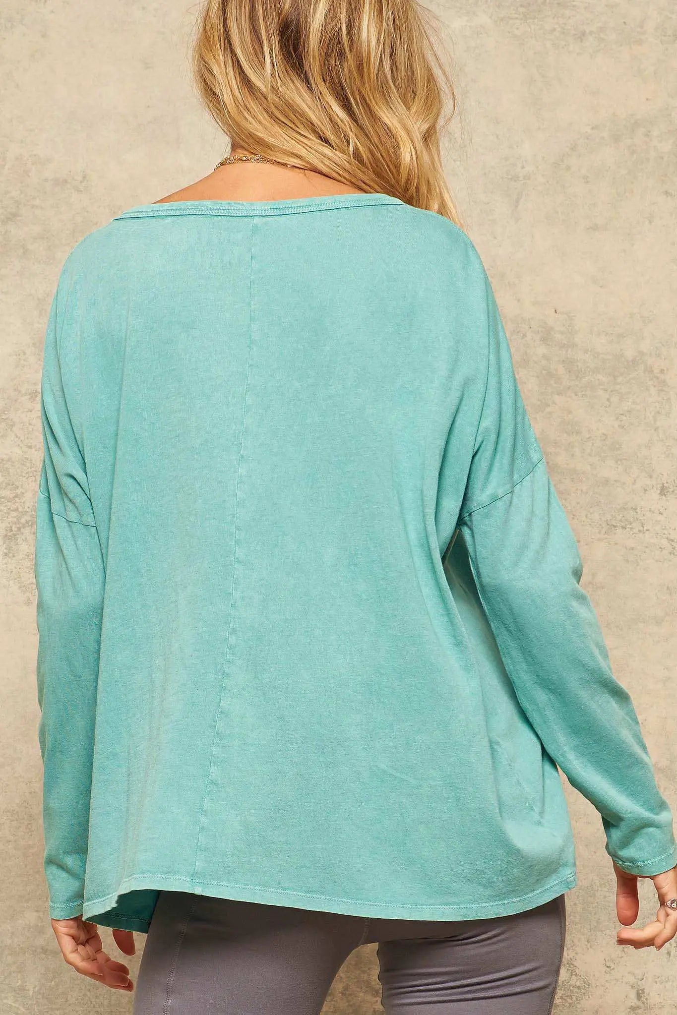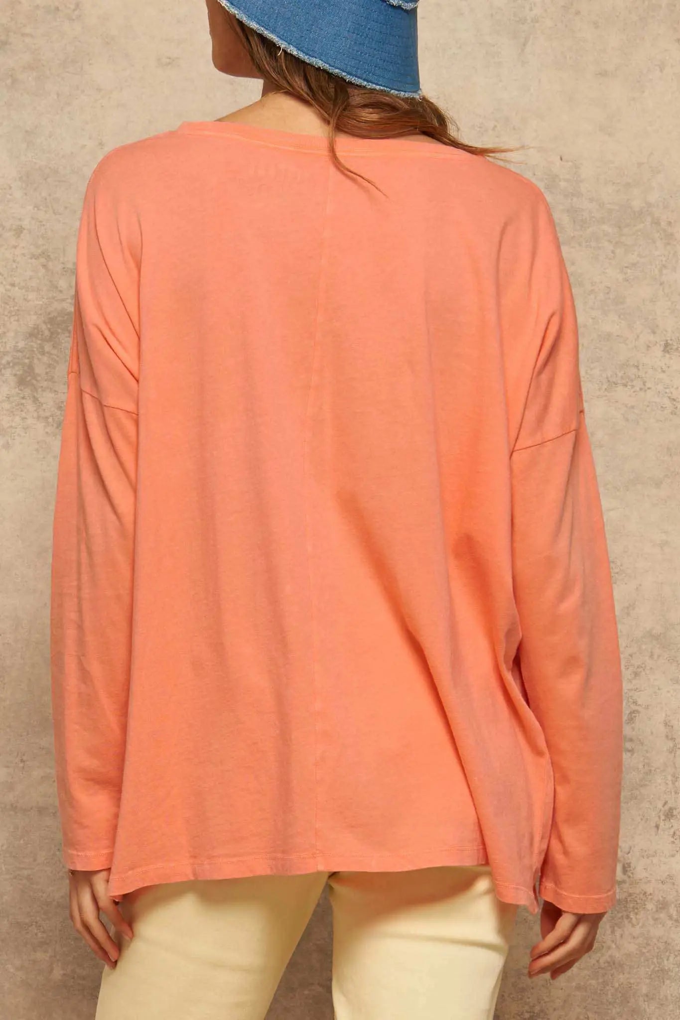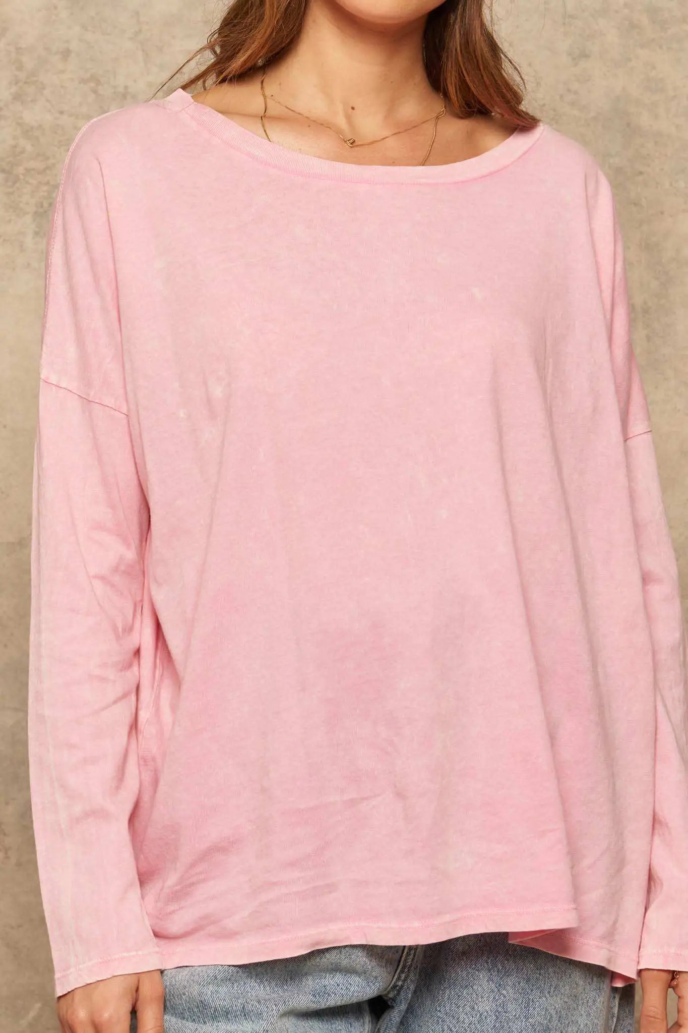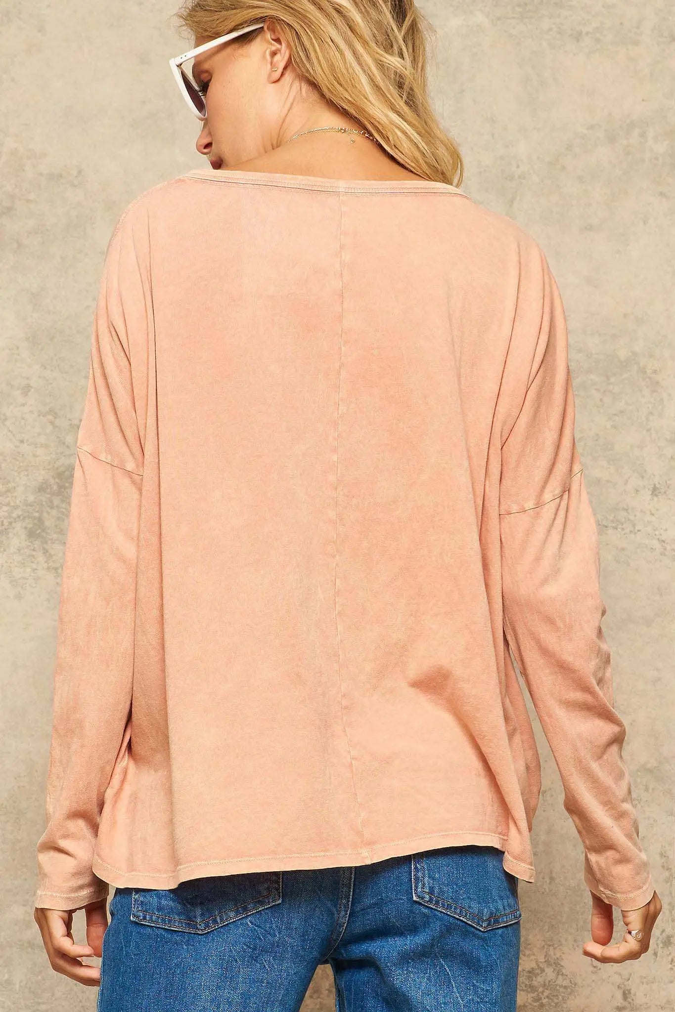 Big Happy Vintage-Washed Oversize Long-Sleeve Tee
