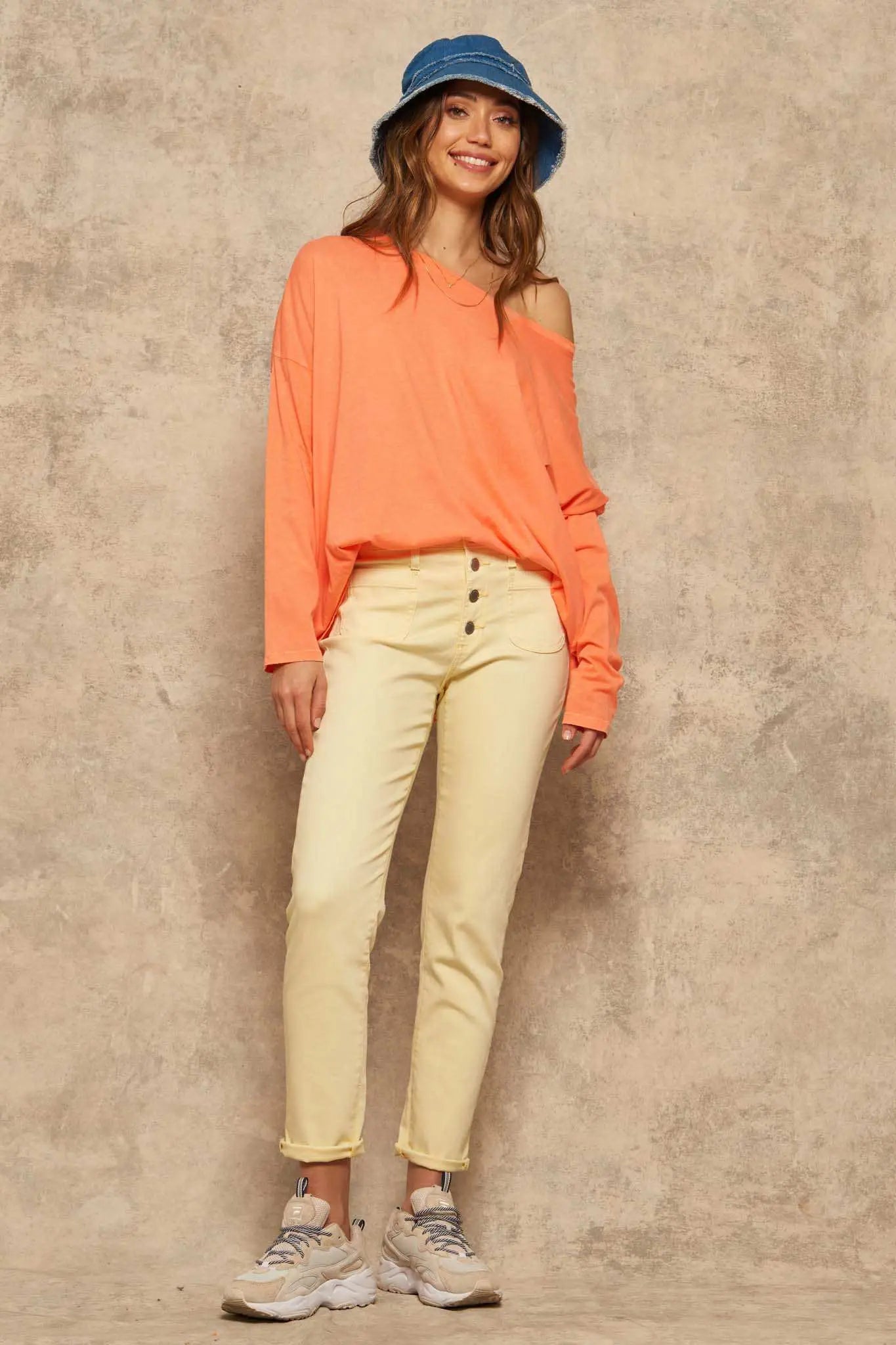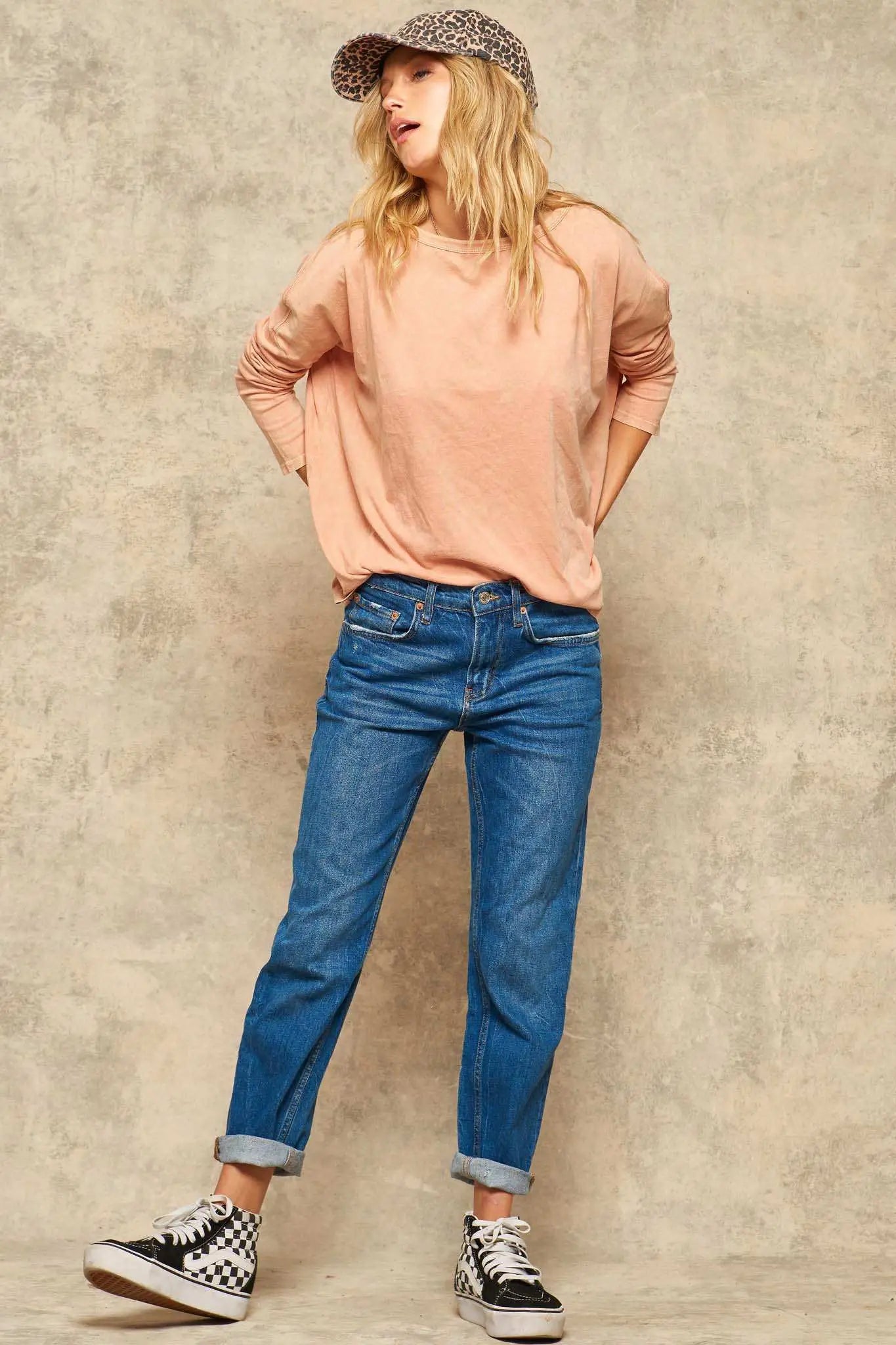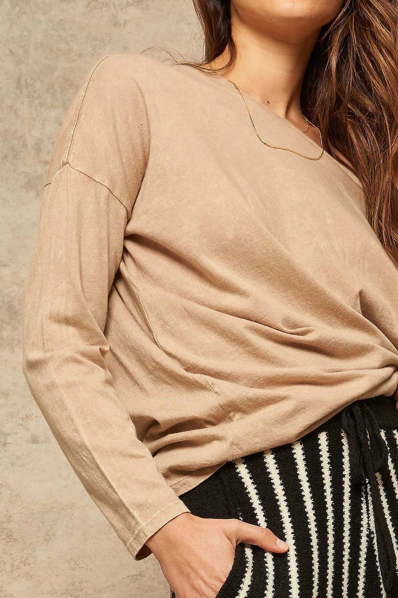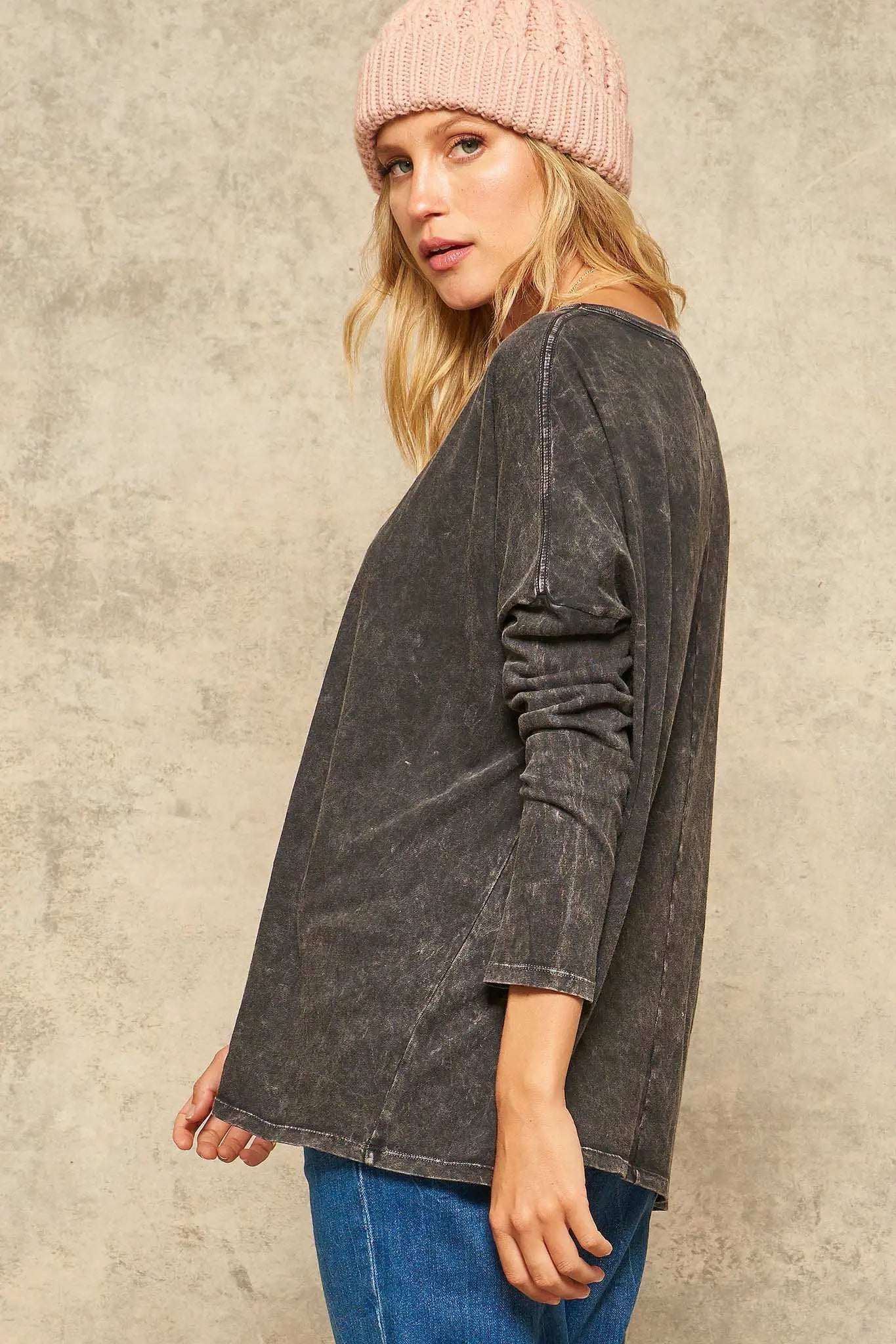 Big Happy Vintage-Washed Oversize Long-Sleeve Tee
