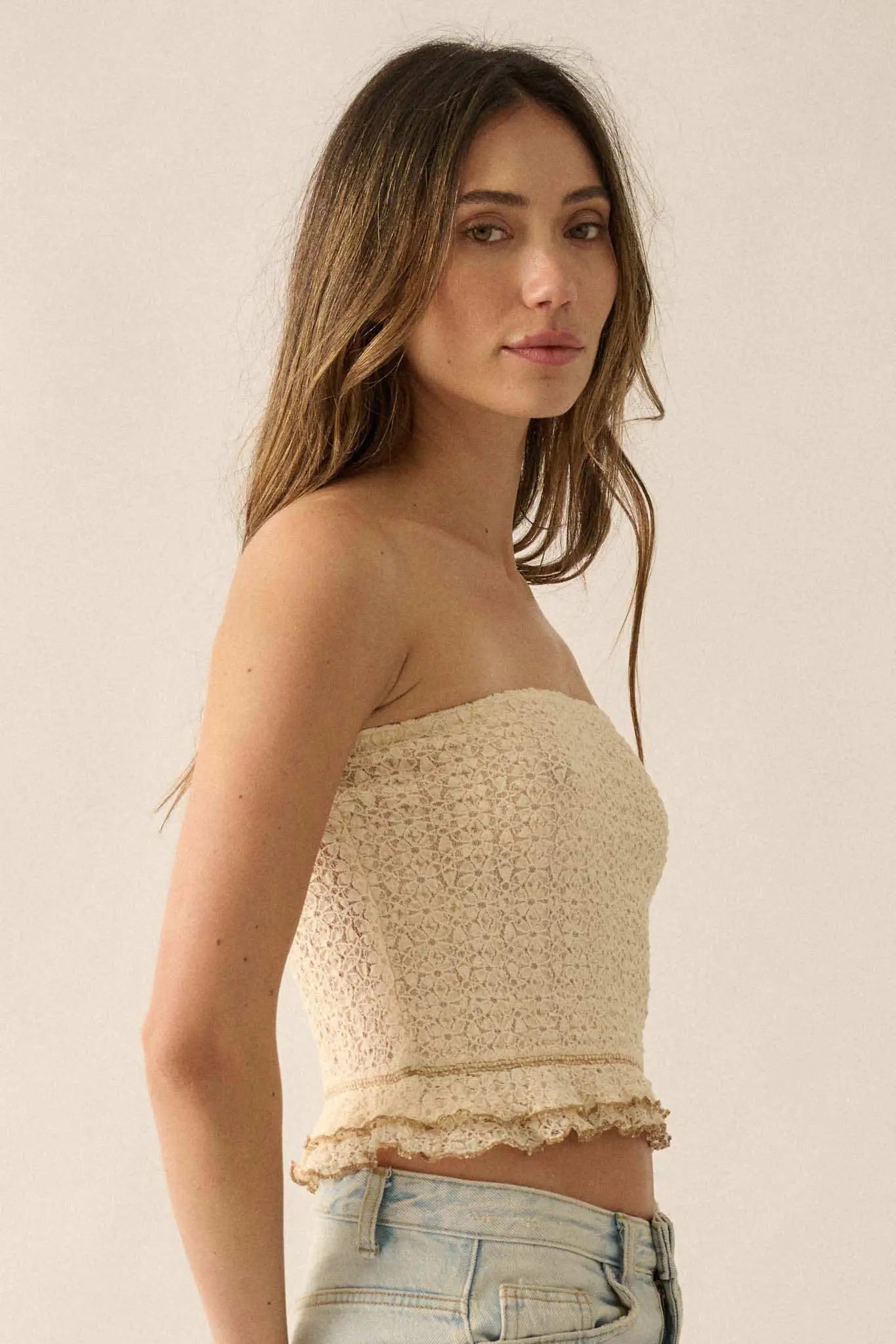 Daisy May Ruffled Floral Lace Bandeau Tube Top