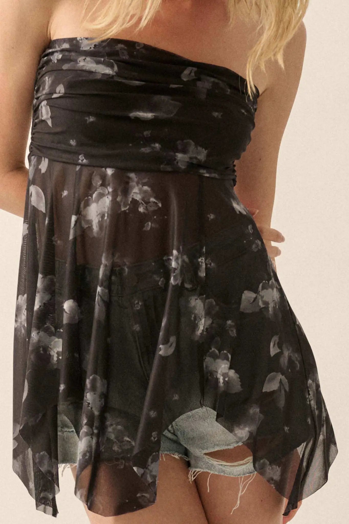 Shadows Blossom Floral Mesh Strapless Babydoll Top - ShopPromesa