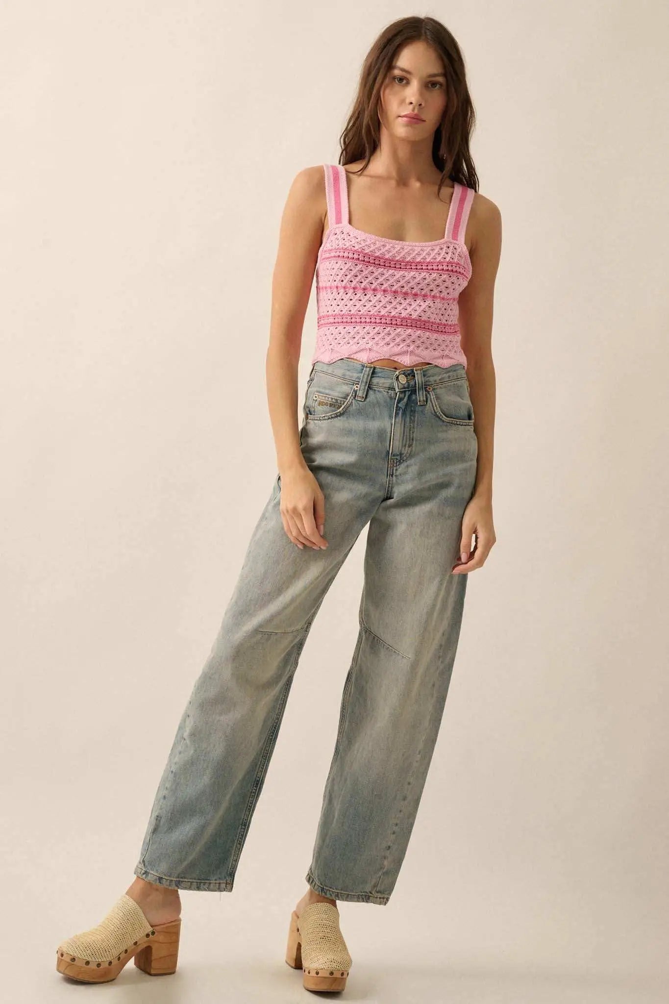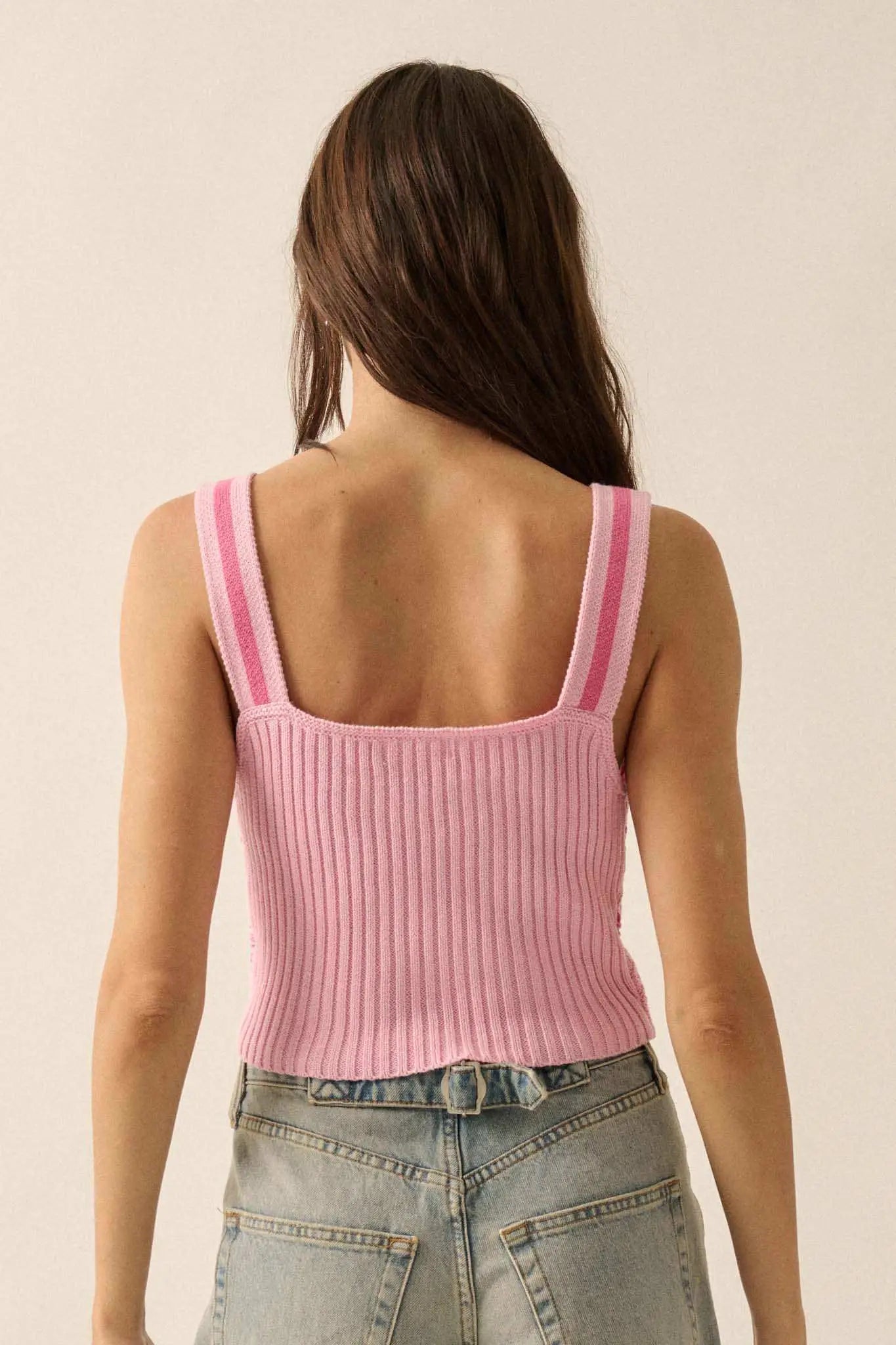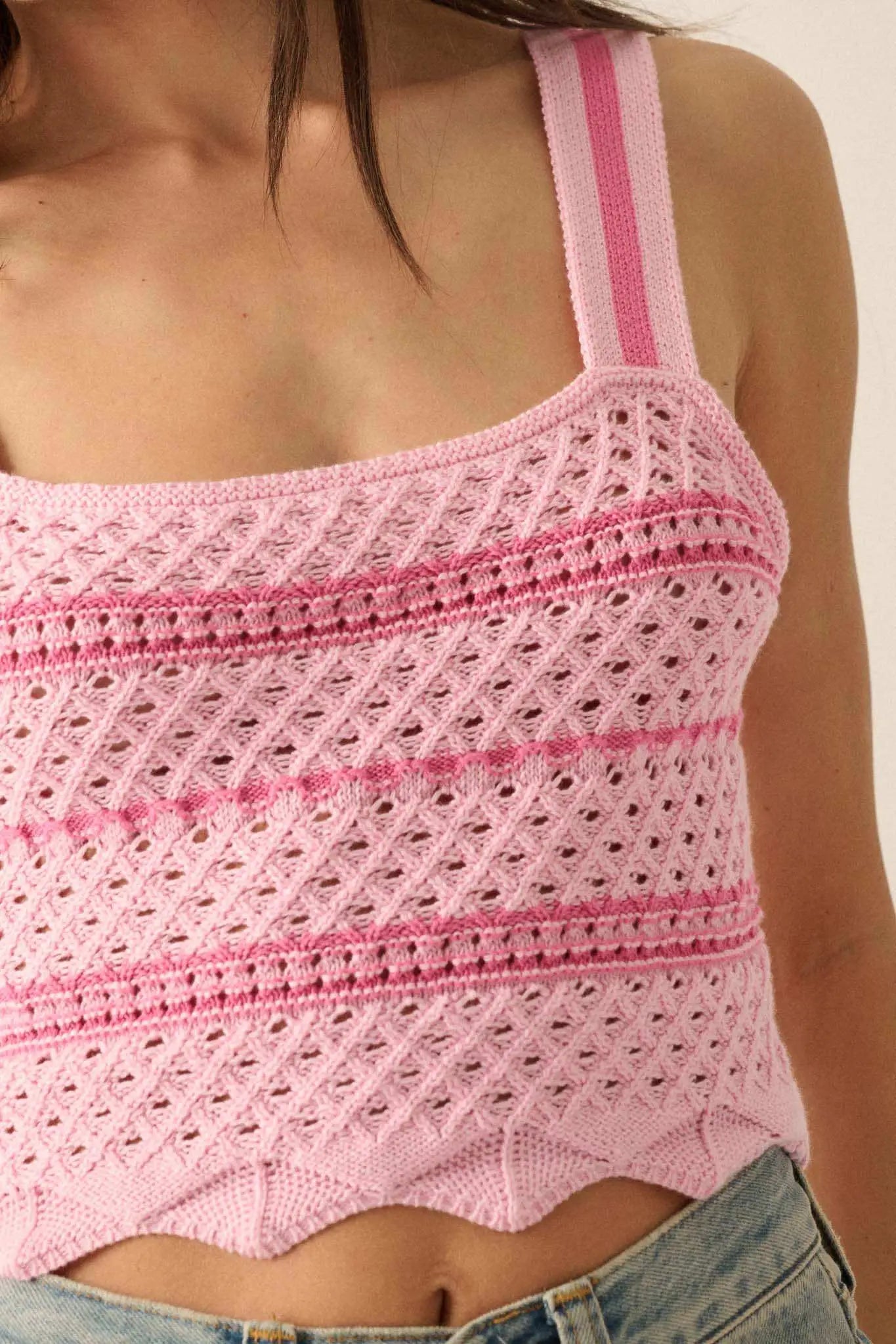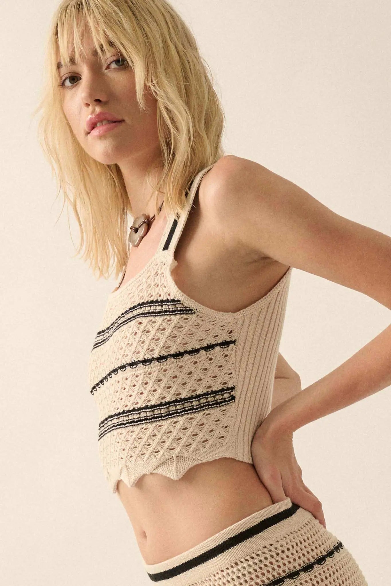 Cali Calling Striped Crochet Knit Cropped Tank Top