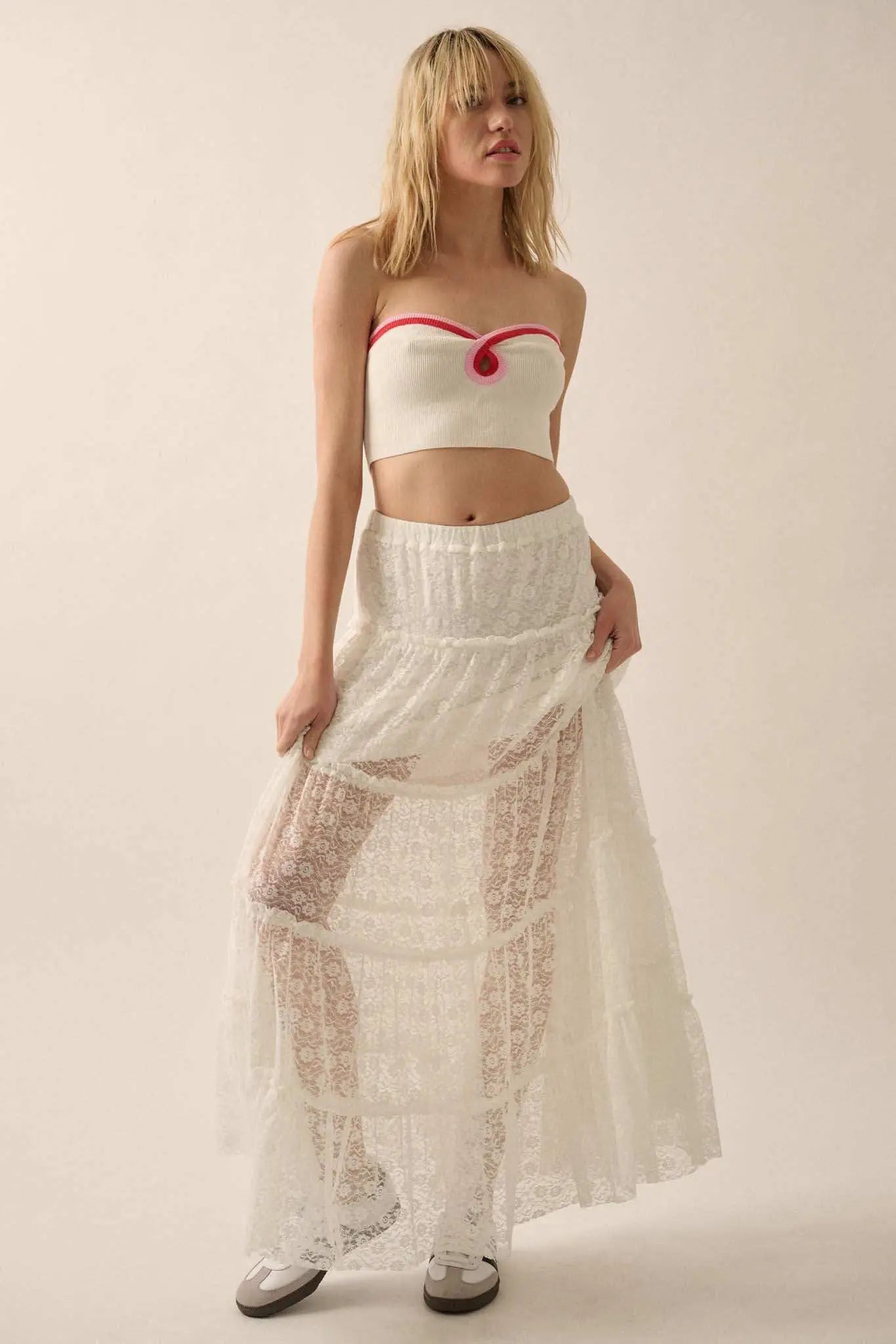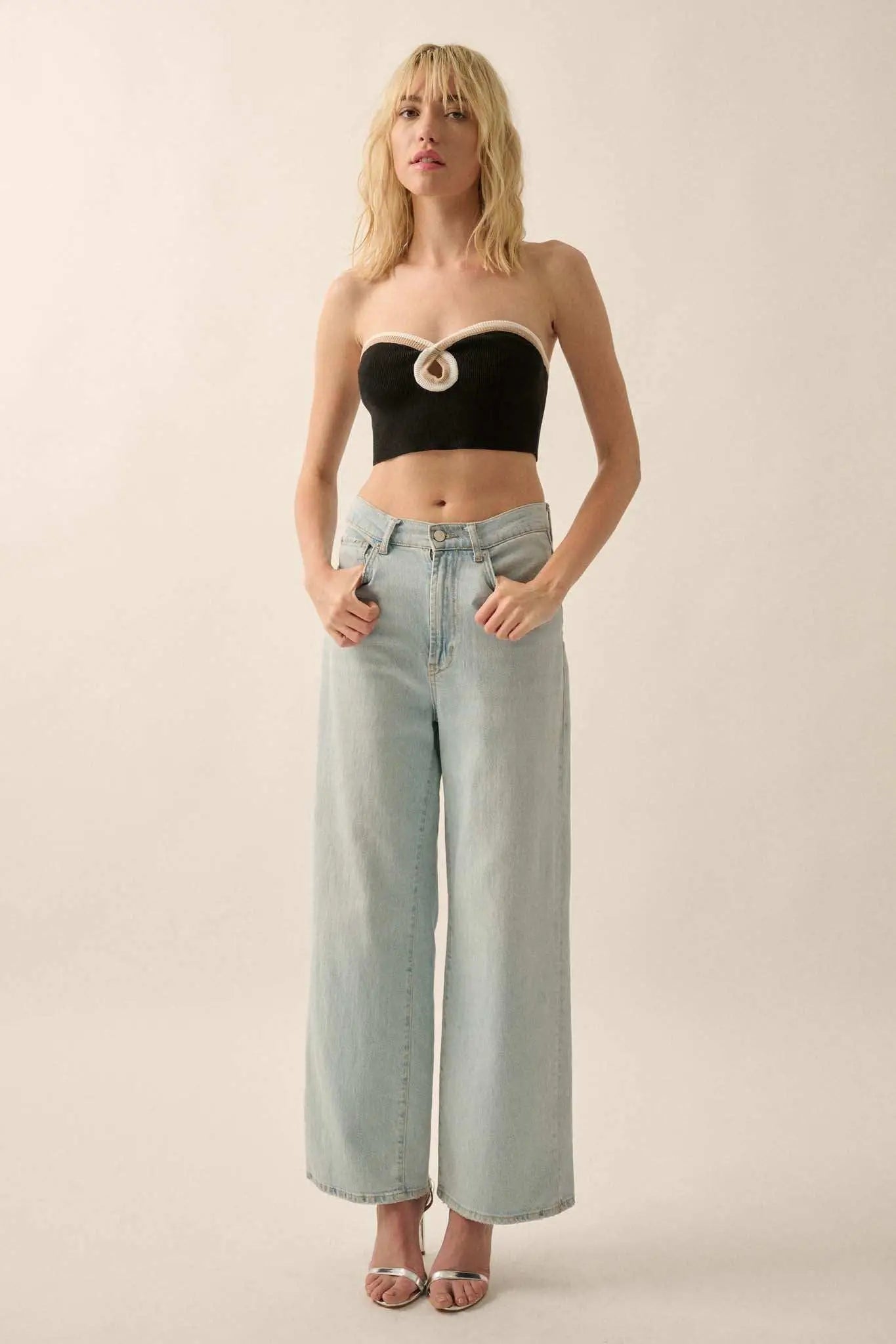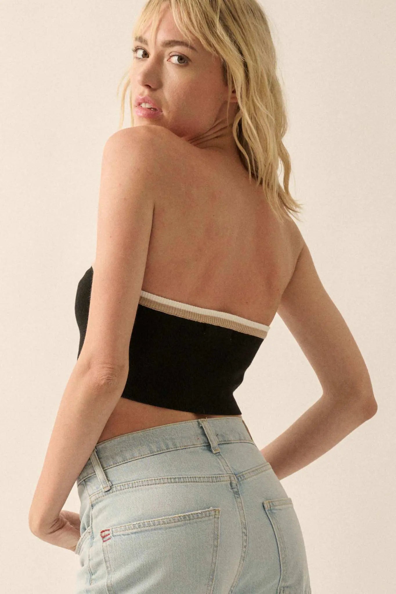 • Ribbed knit tube top.