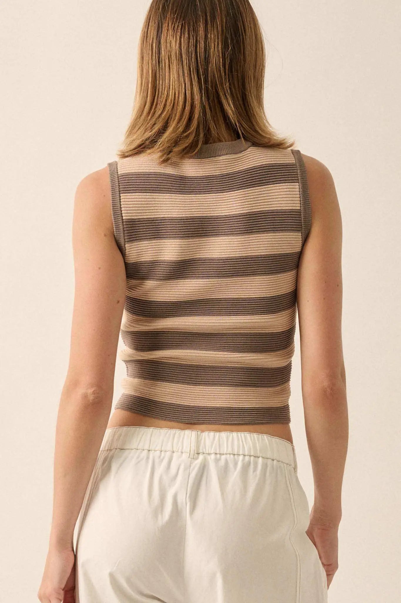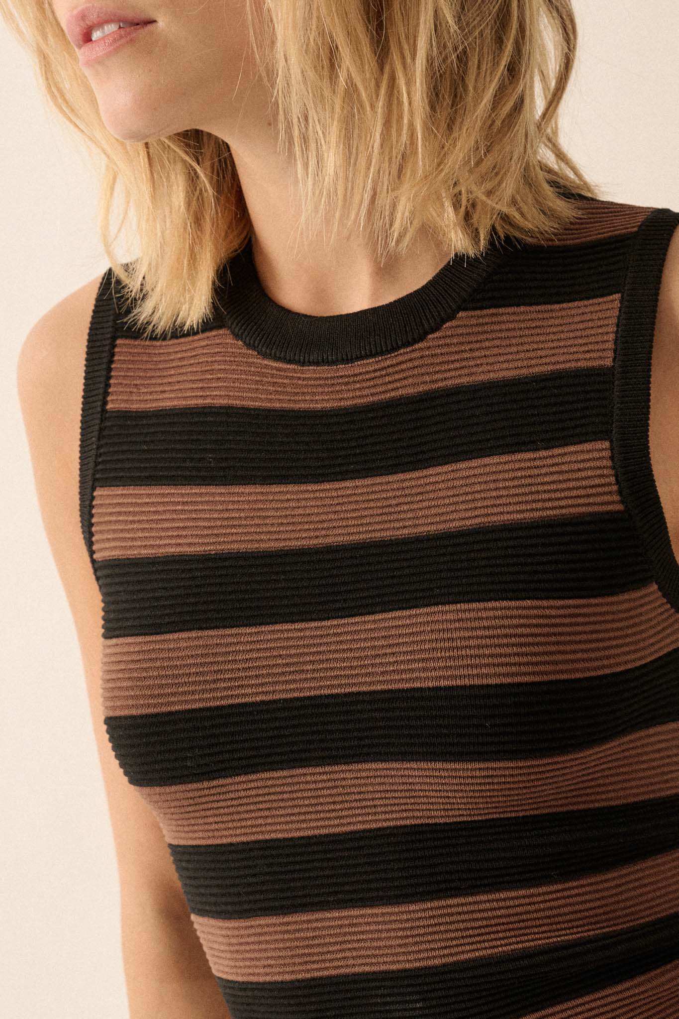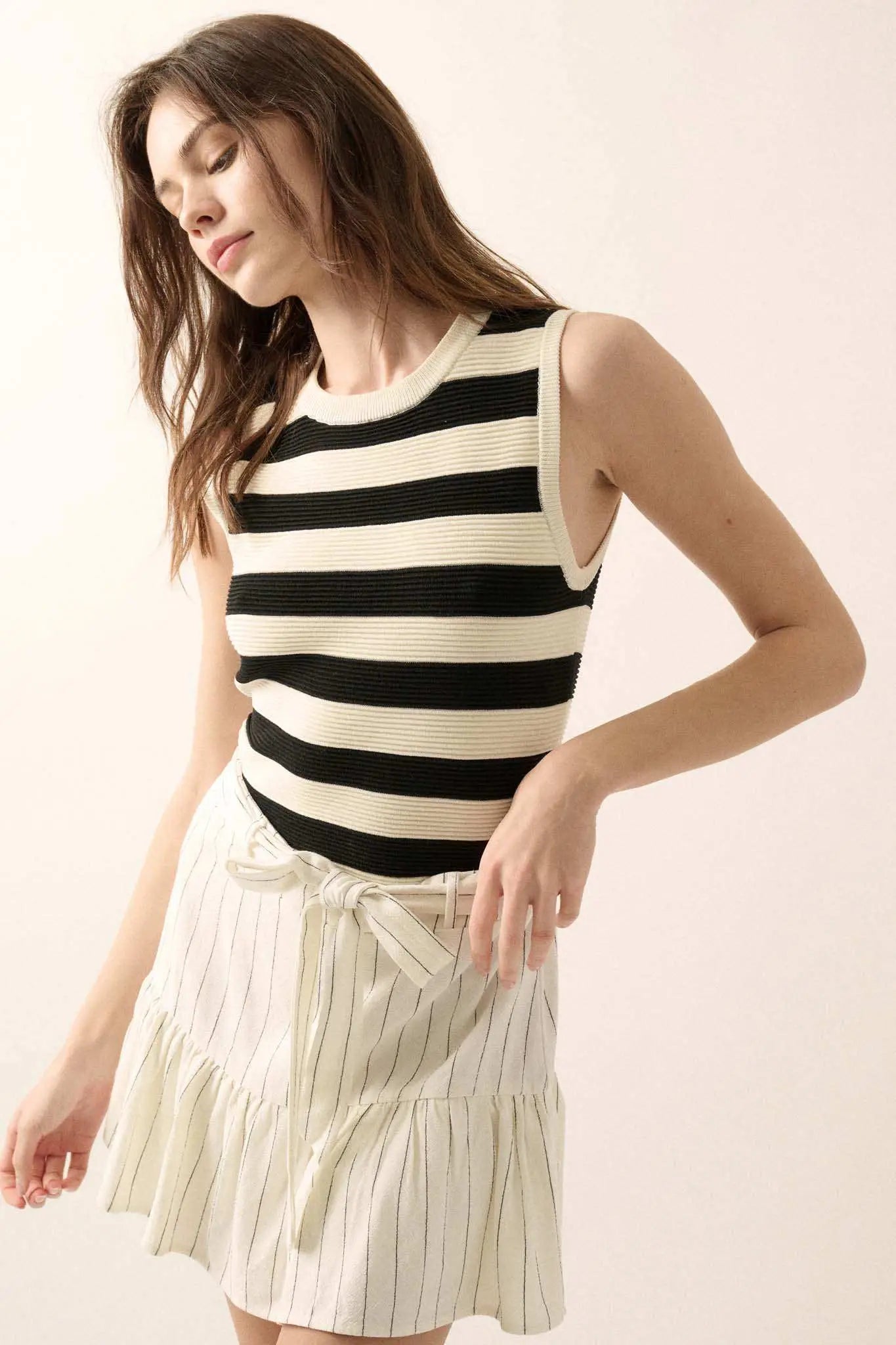 Shaper Fit Striped Rib-Knit Crewneck Tank Top