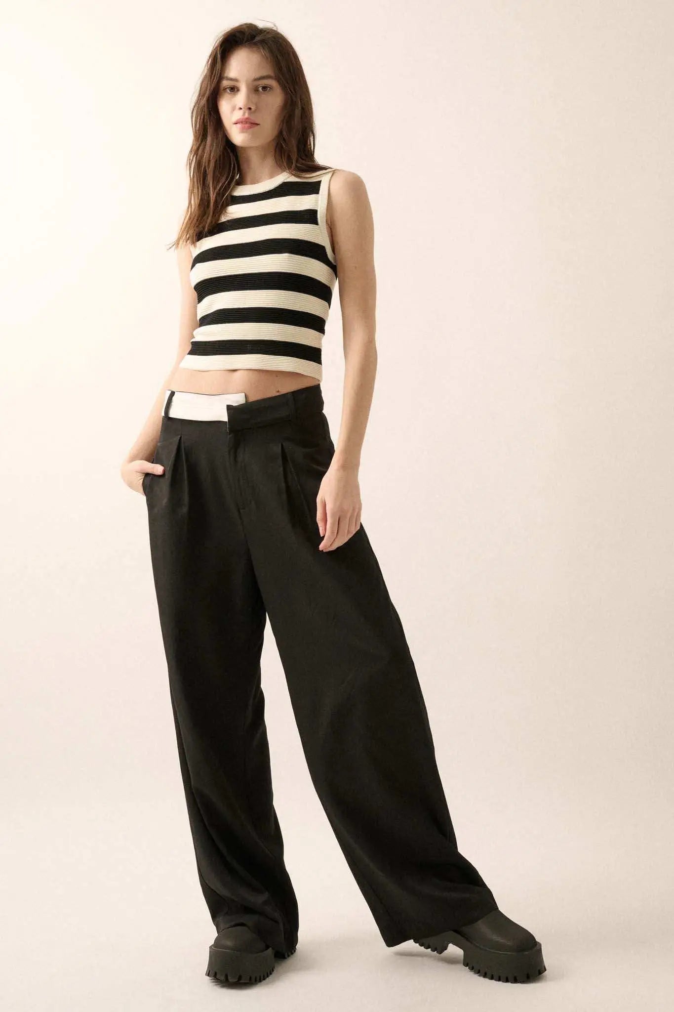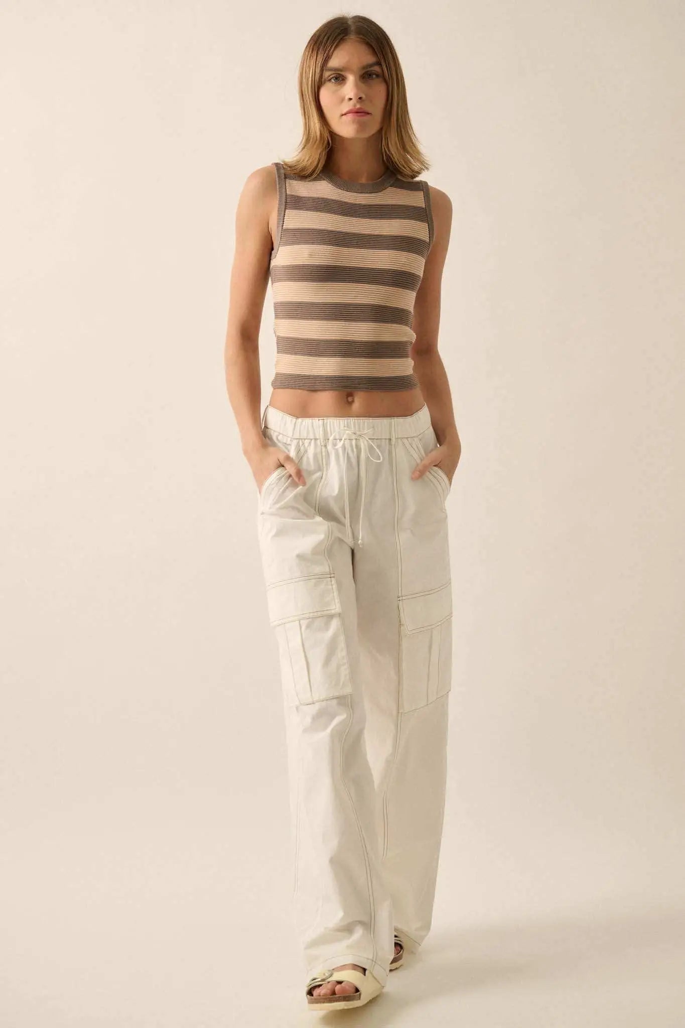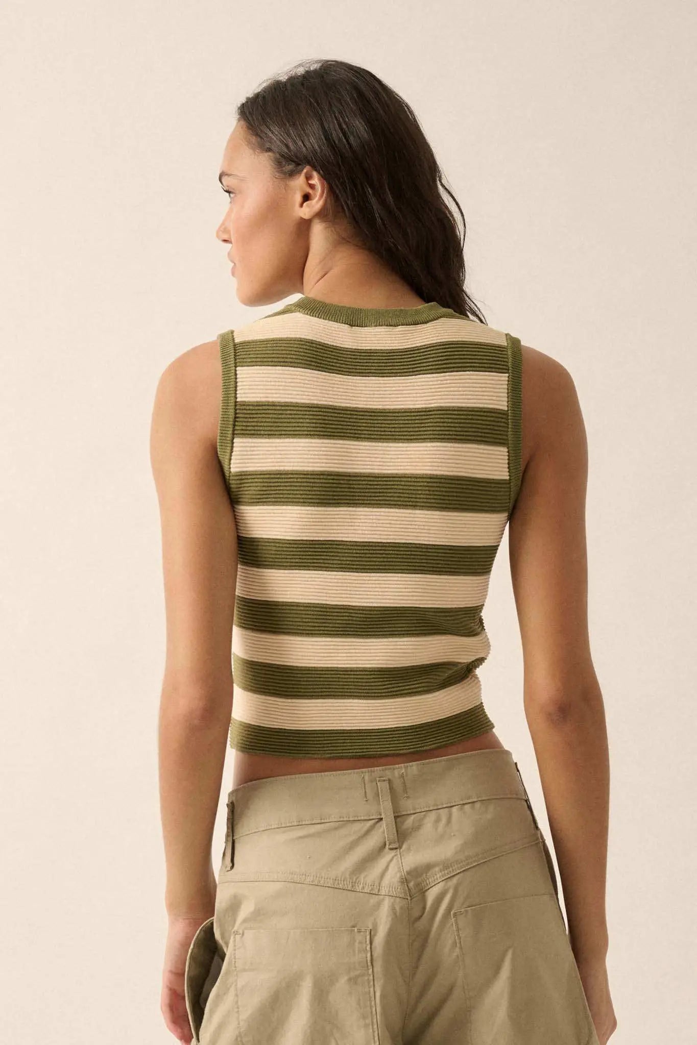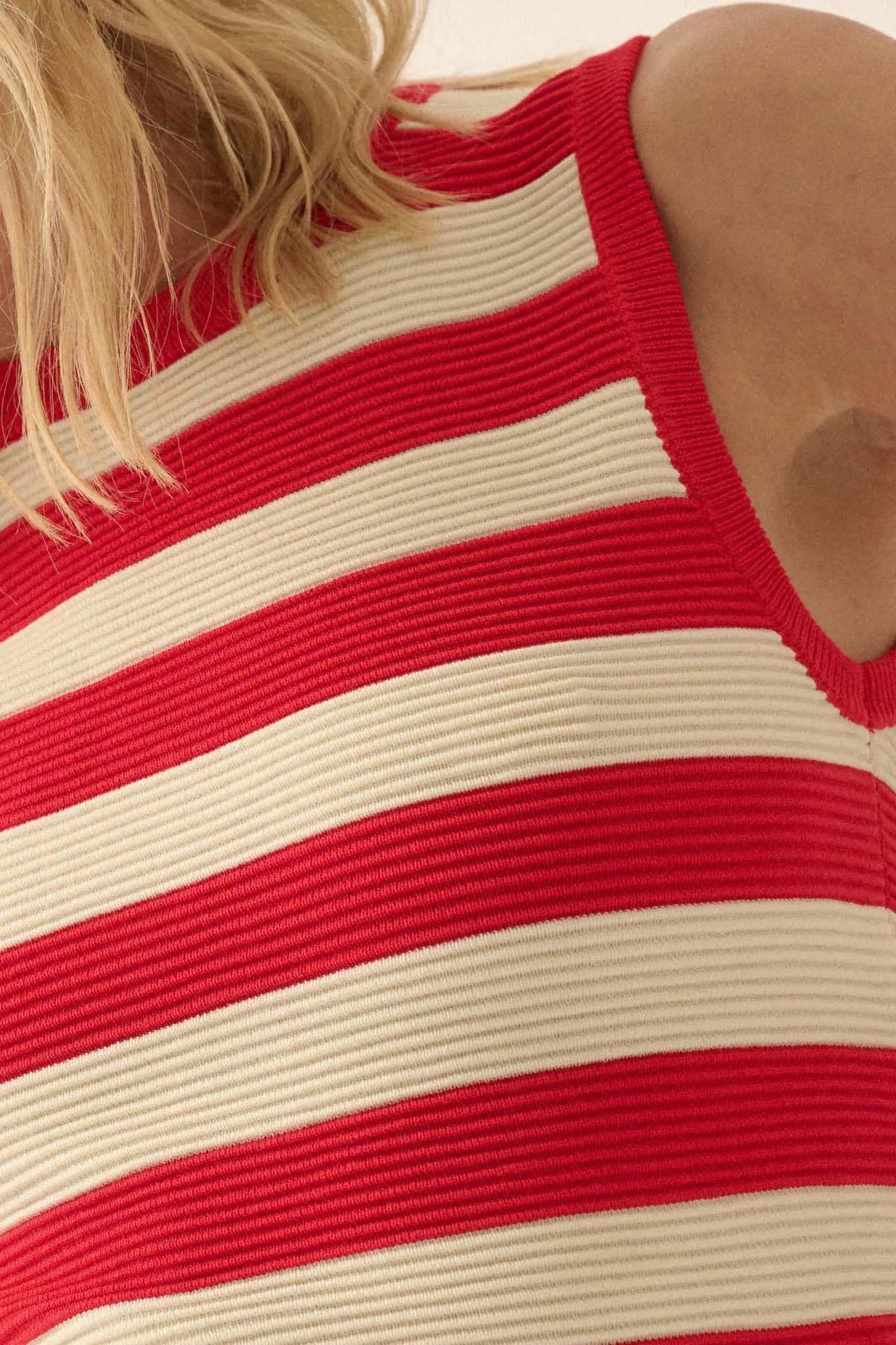 Shaper Fit Striped Rib-Knit Crewneck Tank Top