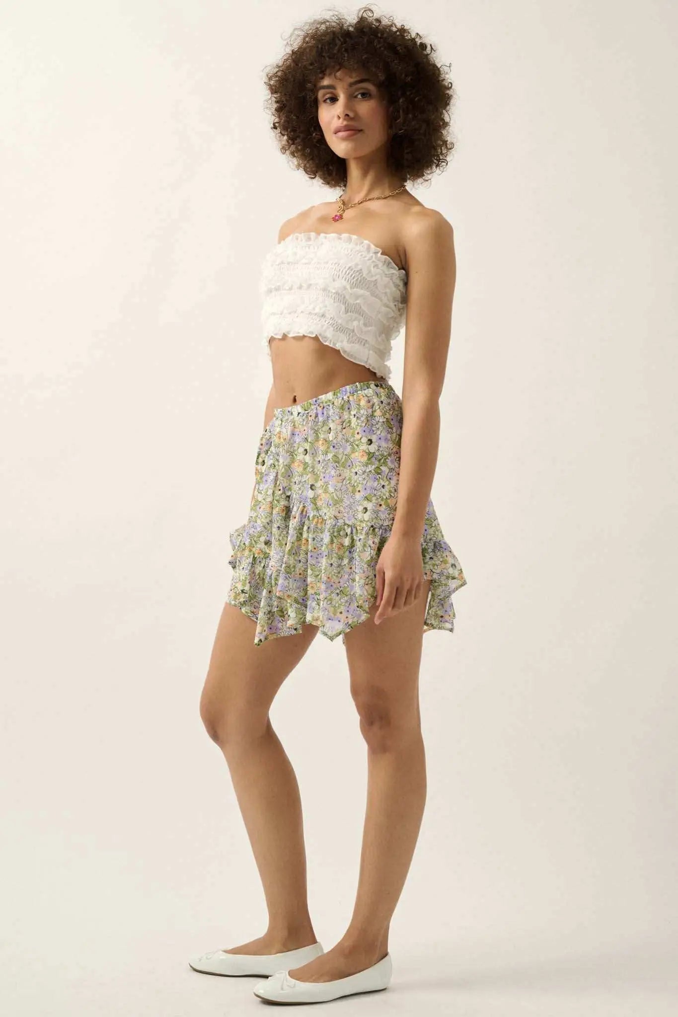 • Ruffle trim throughout.