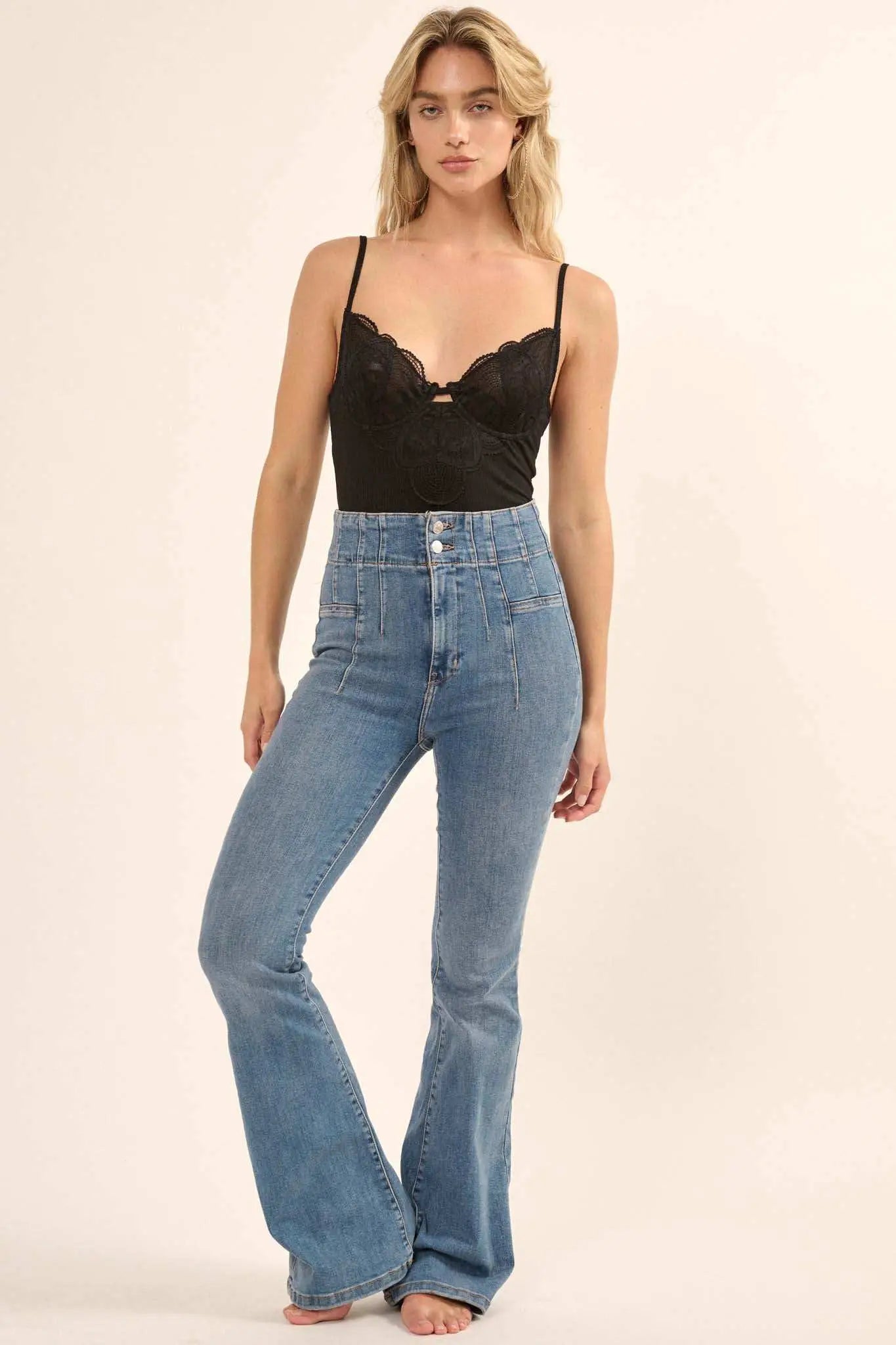 • Lace and ribbed knit bodysuit.