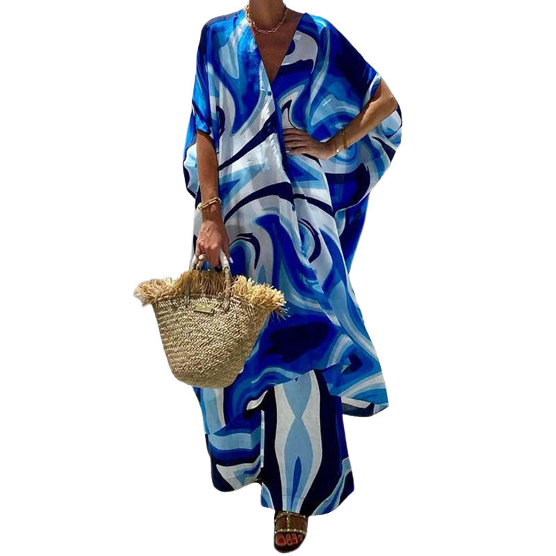European And American Fashionable Batwing Sleeve Top Wide Leg Trousers Two-piece Set