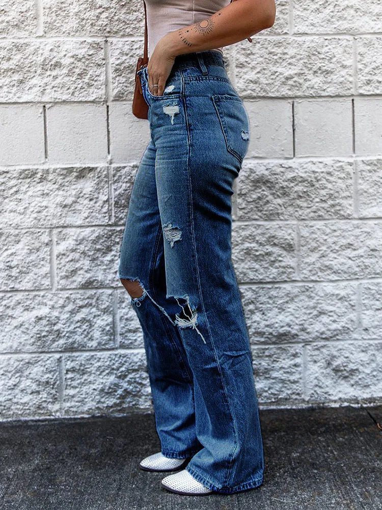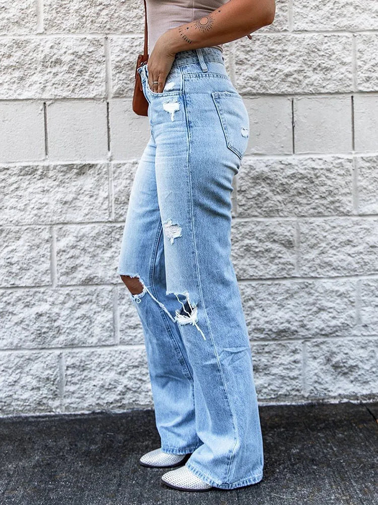Craft of Weaving : Knit Season : All Season Release Date : Spring 2025 Thickness : Regular Age : Middle Age Style : Casual Jeans Style : Wide Leg Pants Fit Type : Regular Fabric Type : Softener ,Hole,None Waist Type : High Closure Type : Zipper Fly Wash : Distressed,Sand Wash Length : Full Length Material : Cotton,Polyester Gender : Women Item Type : Jeans Elasticity : Medium Strecth