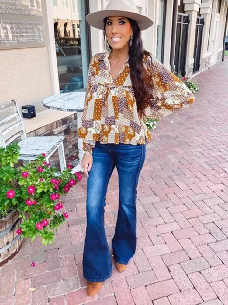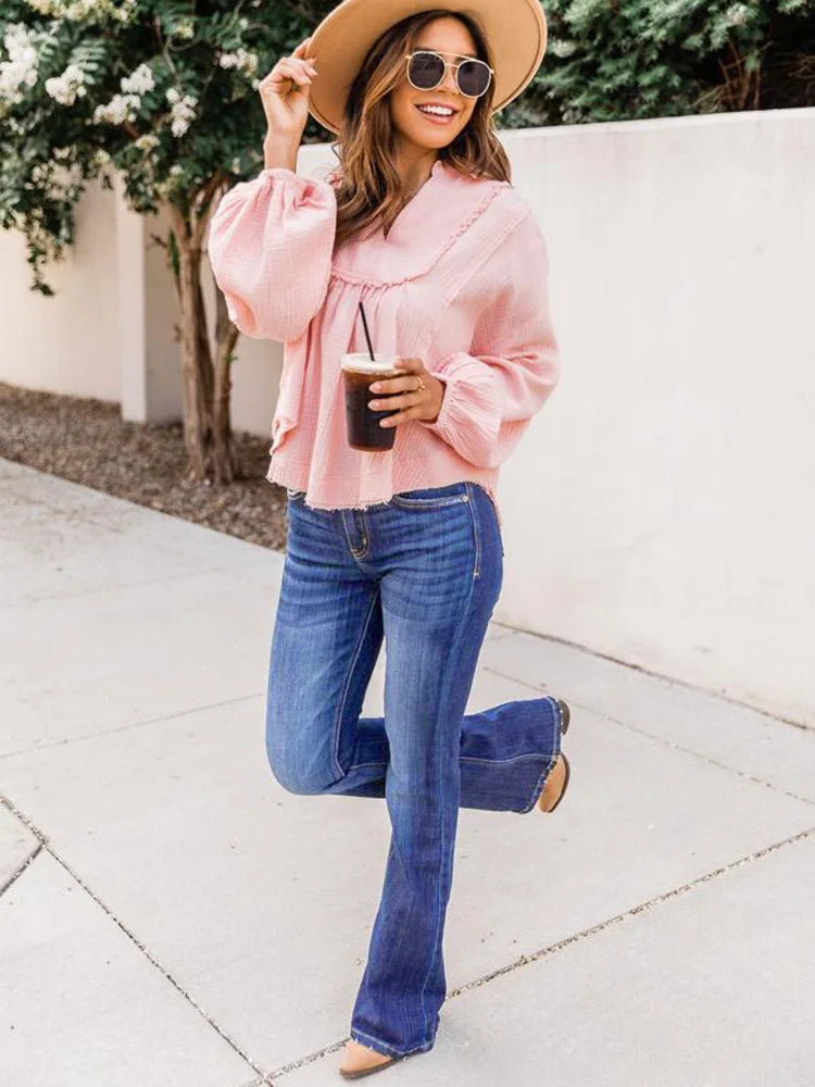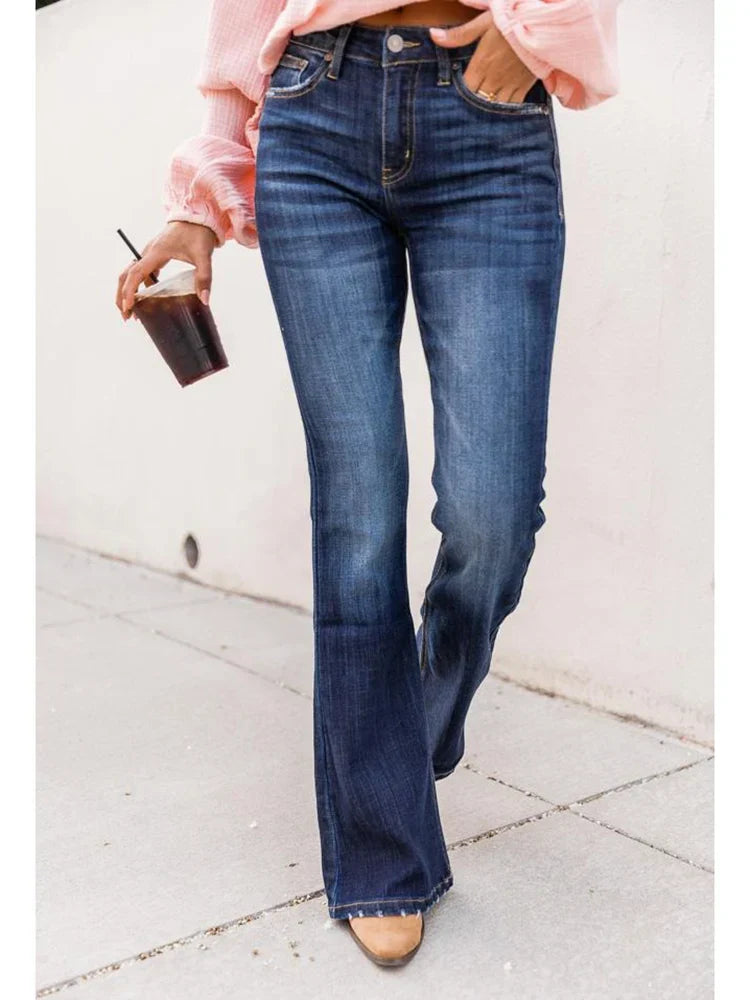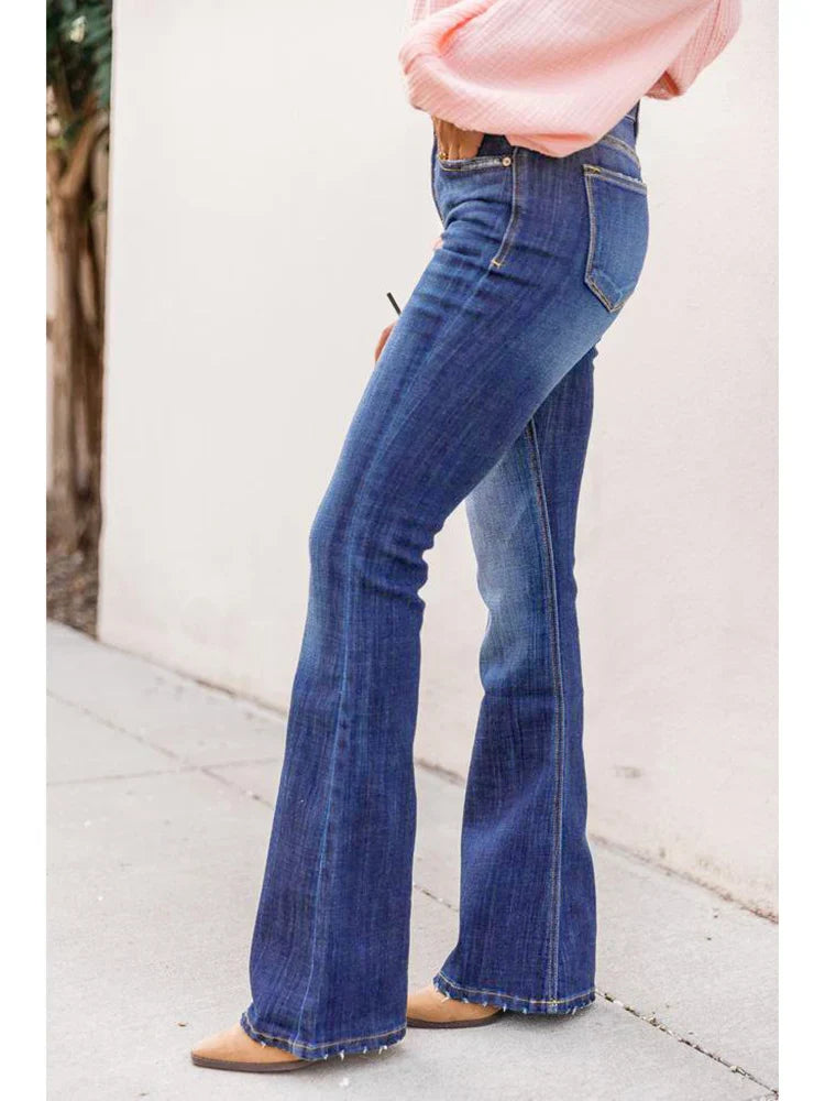 FashionSierra - Women Flare Bell Punk Distressed Classic Mom Casual Trouser