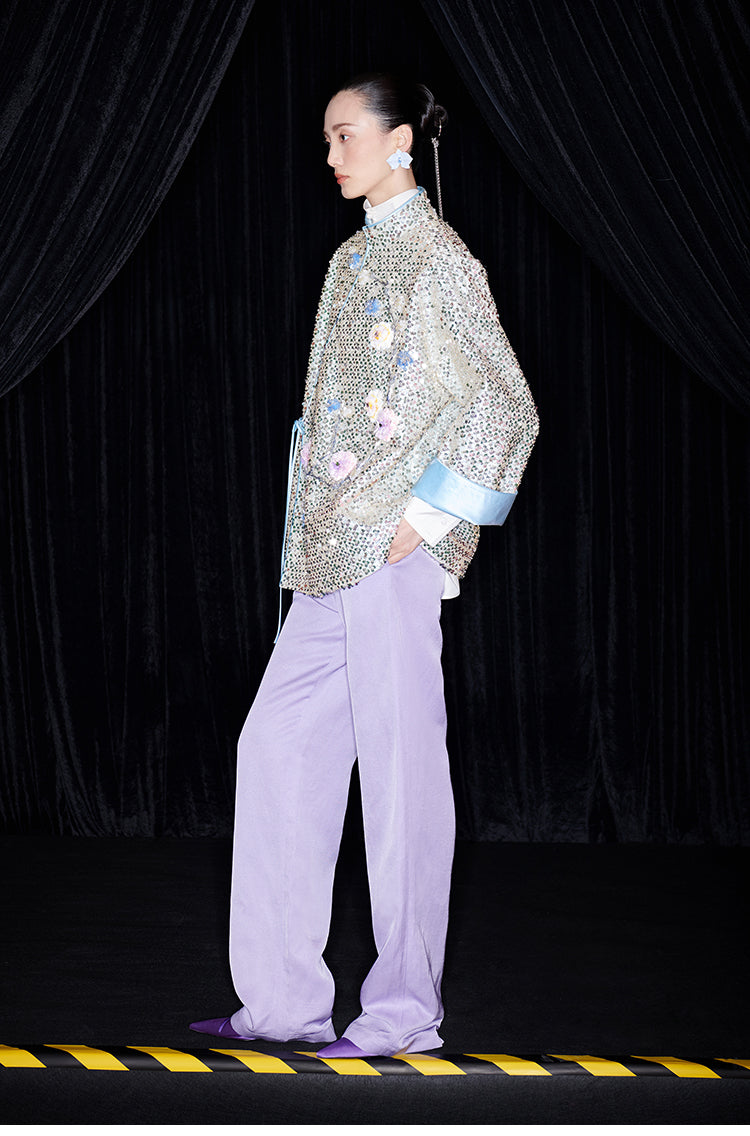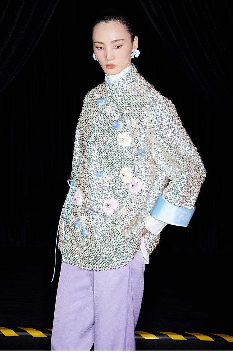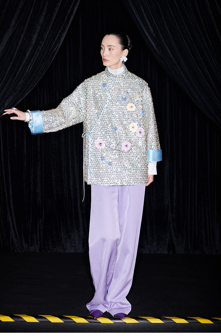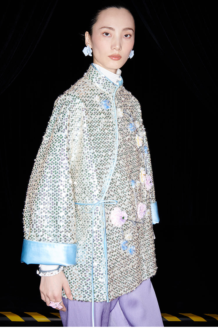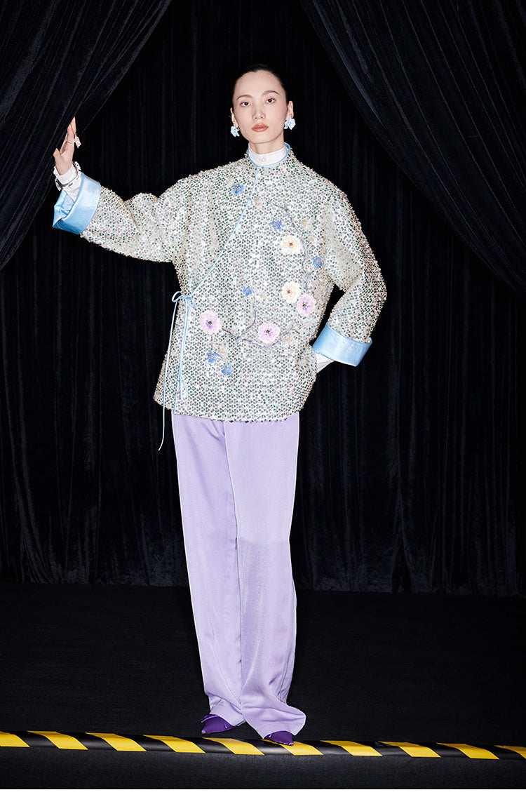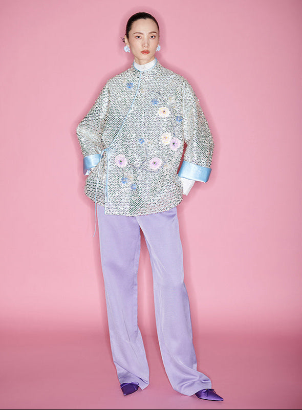 M essential Mackay designer plum blossom beaded jacket pants - drop.