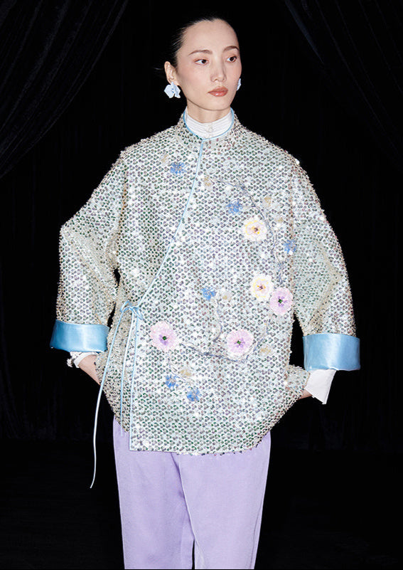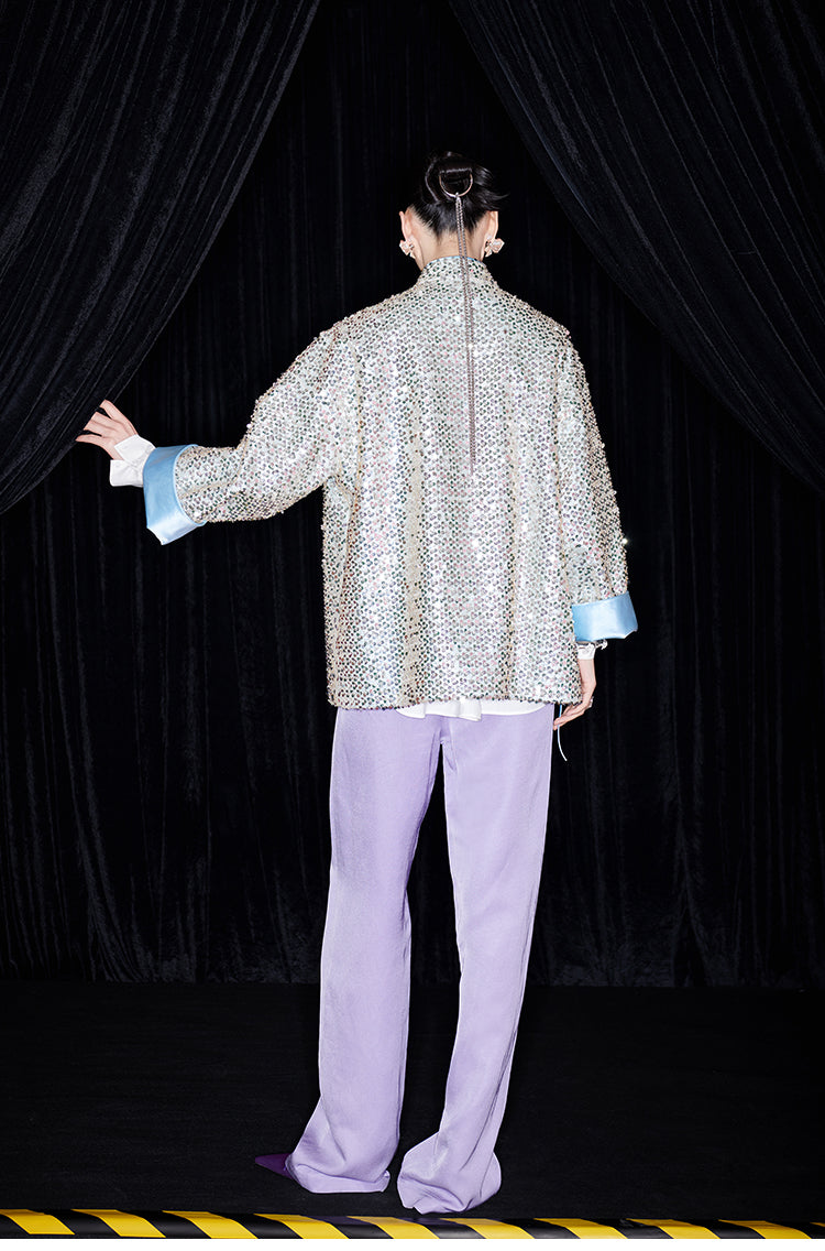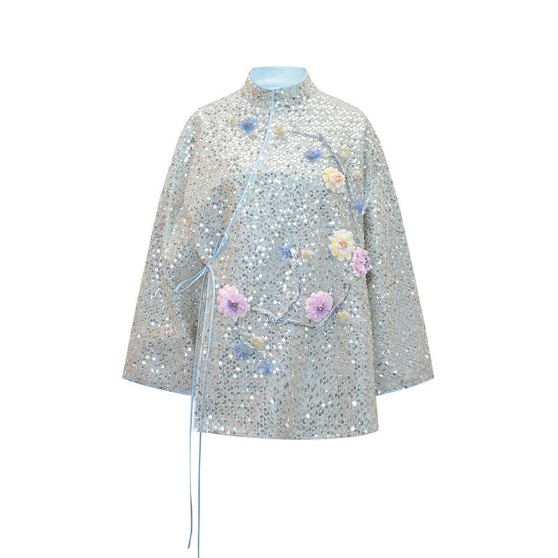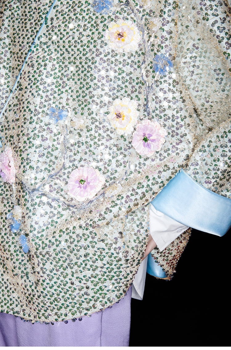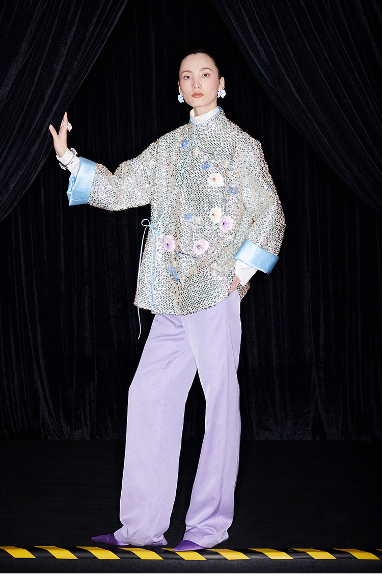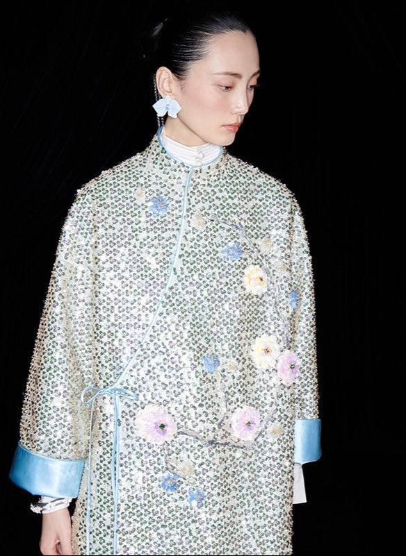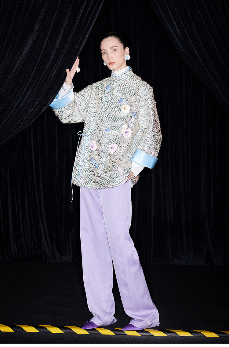 M essential Mackay designer plum blossom beaded jacket pants - drop.